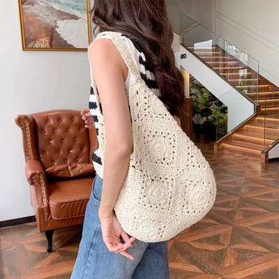 ニットトートバッグ かぎ針モチーフ