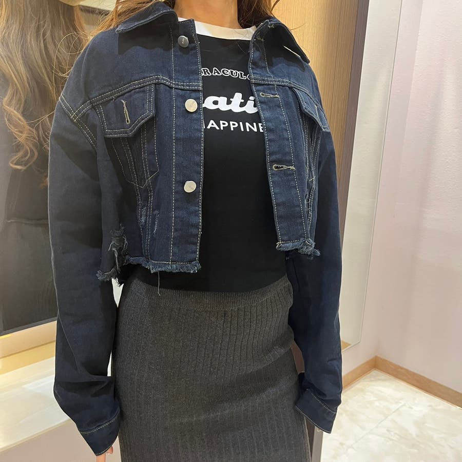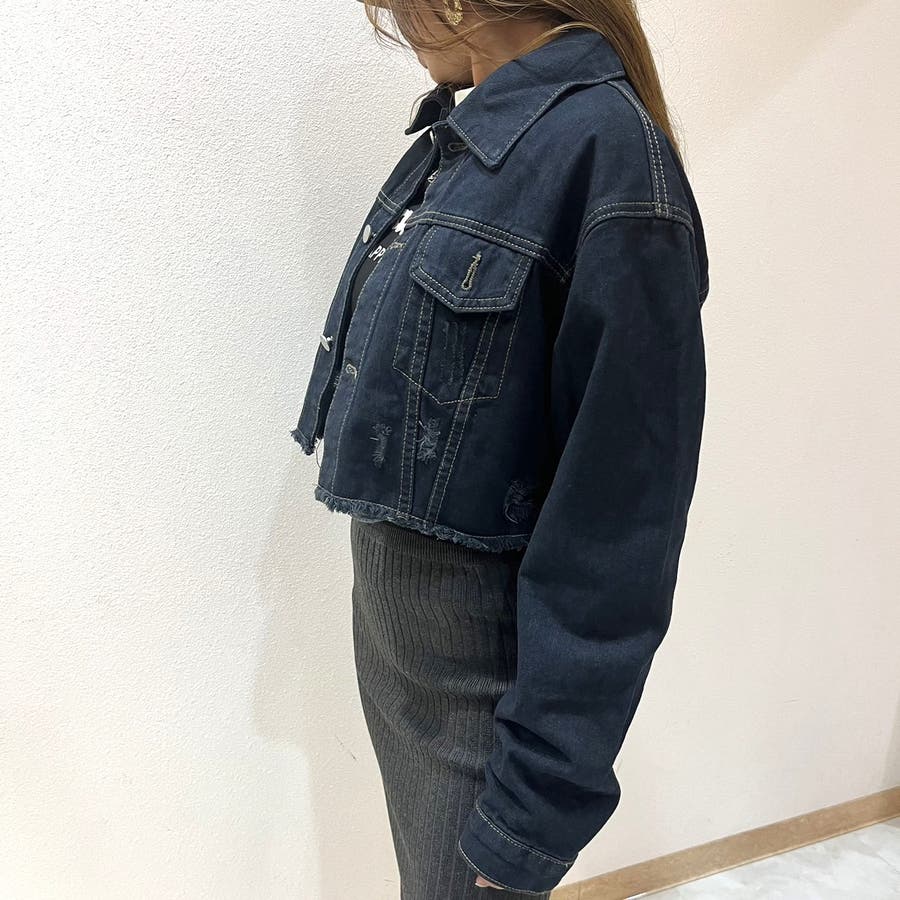 カットオフデニムジャケット/レディース/ダメージ/ショート