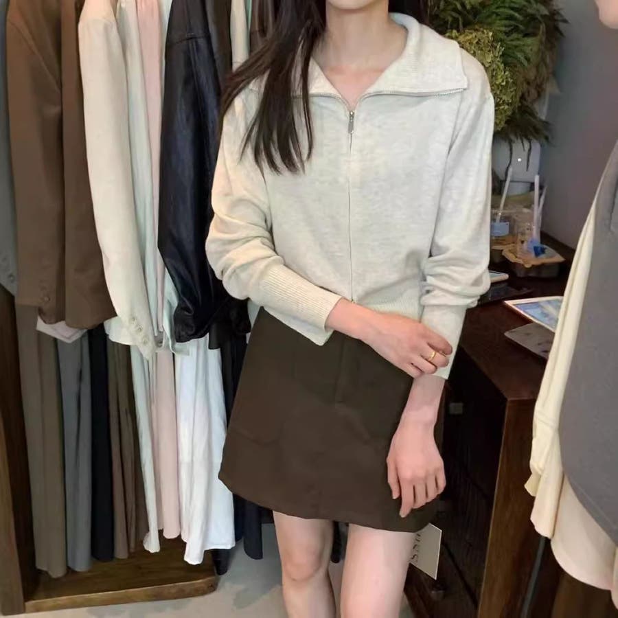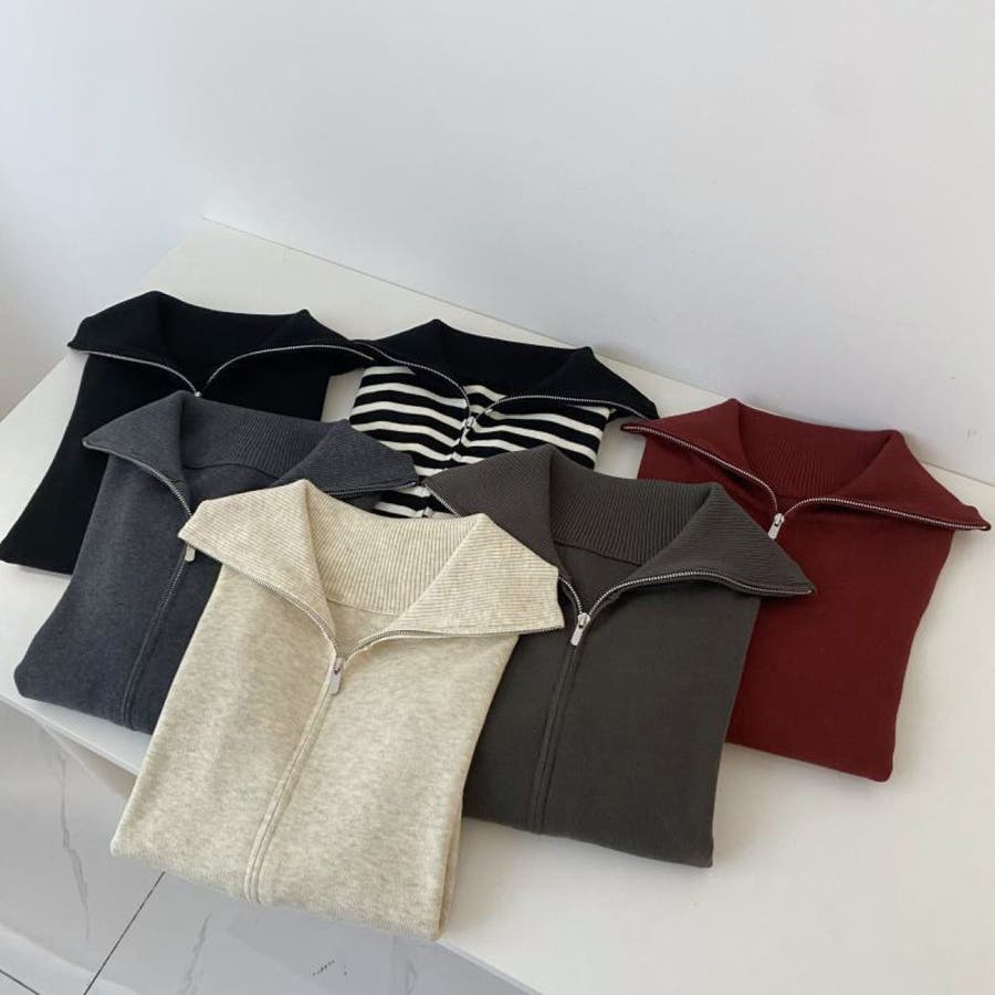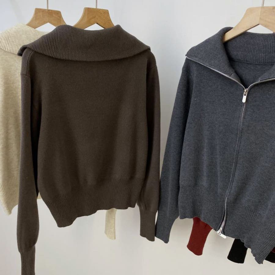 えり付きZIPニットカーディガン/レディース