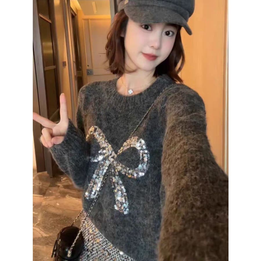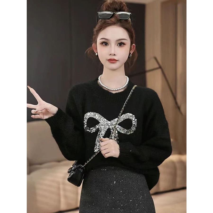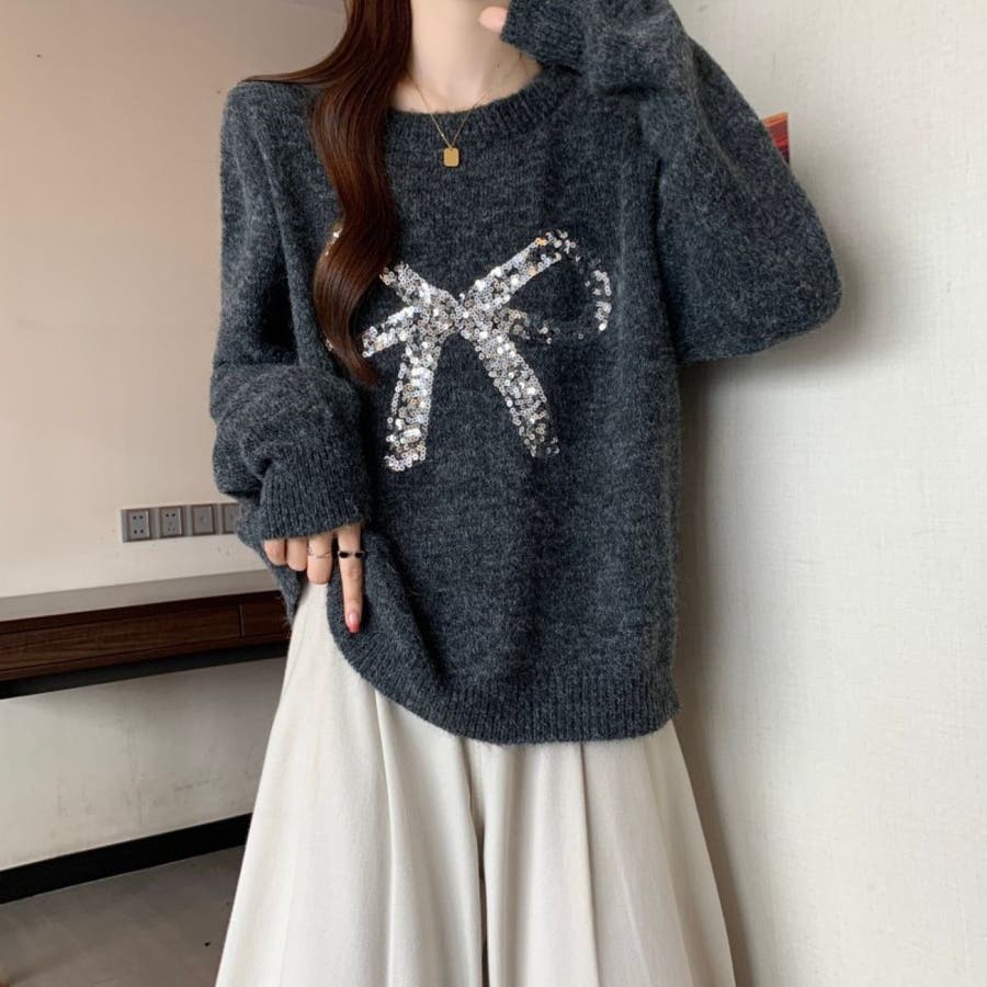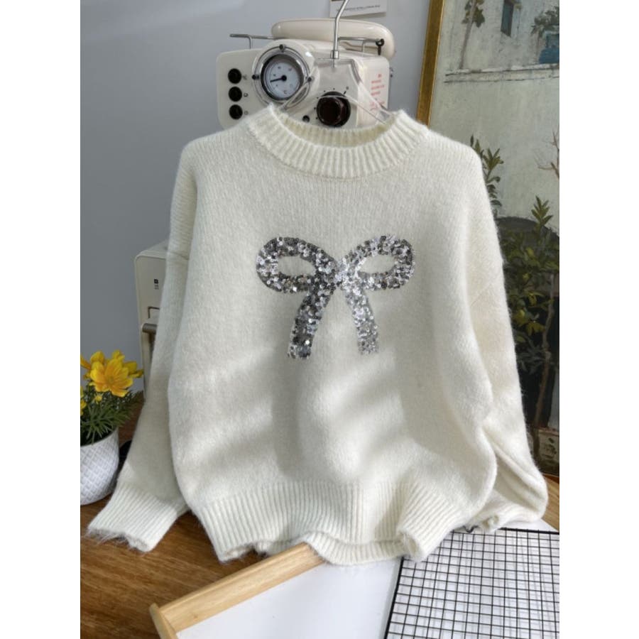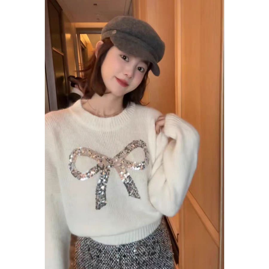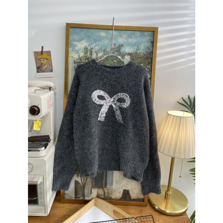 レディース/トップス/ニット/セーター/ショート丈/リボン/長袖/カジュアル/大人かわいい/ヘビロテ/トレンド/韓国ファッション/リラックス/着やせ/コスパ/おしゃれ/お出かけ/デート/休日コーデ/学生/普段着/普段使い/かわいい/着回し/高見え/リボン/インスタグラム/インスタ映え/秋/秋服/冬/冬服/ JO24B316