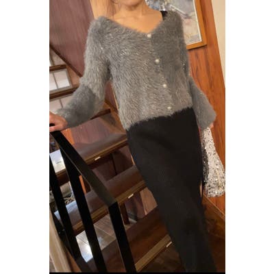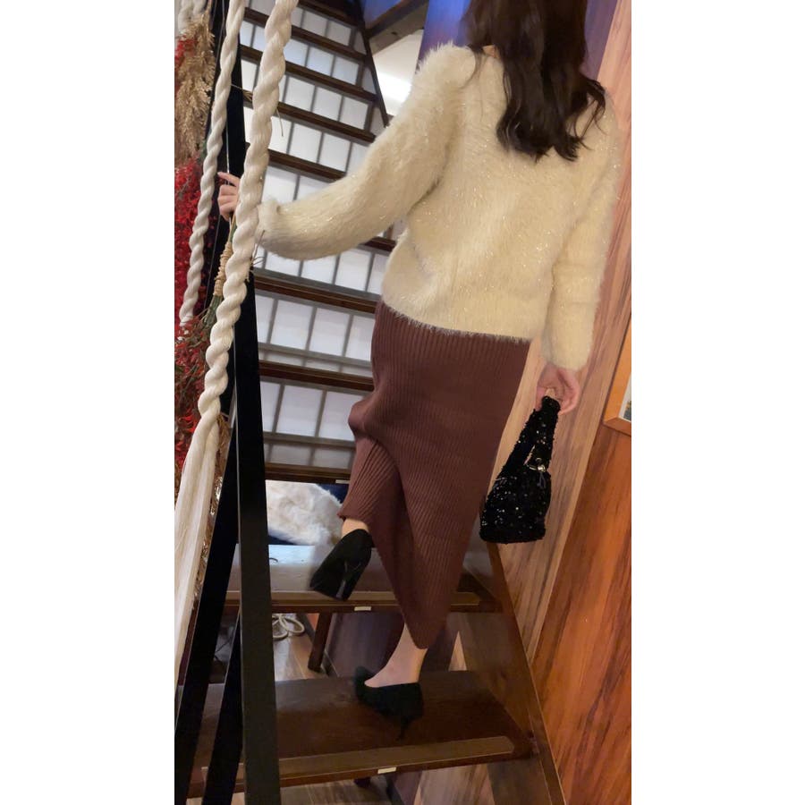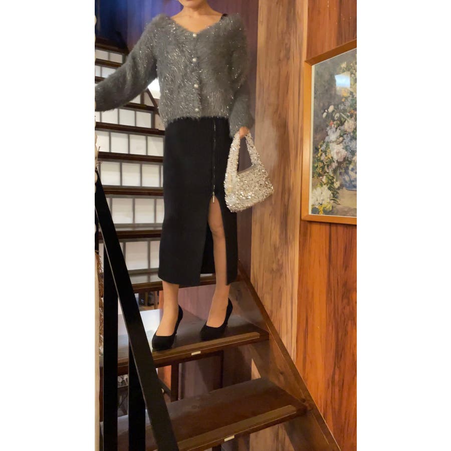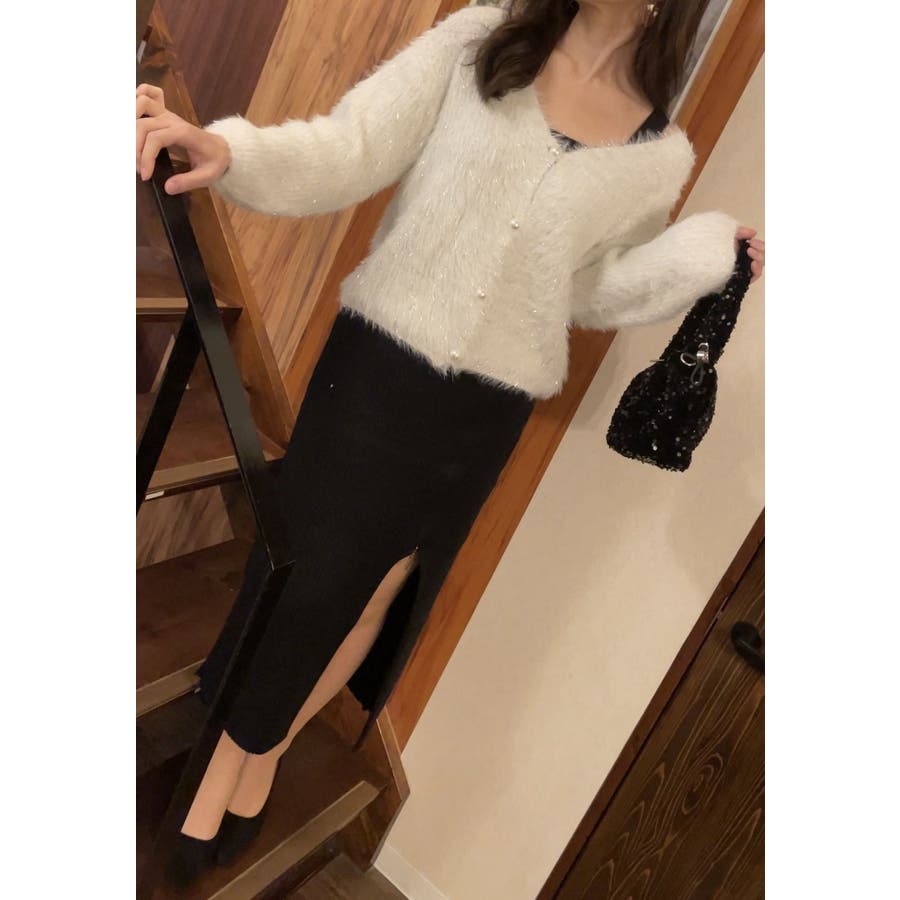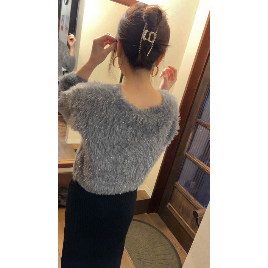 【着回し力抜群!】可愛くもエレガントにも♪ シャギーVカーディガン 肌触り良く着…