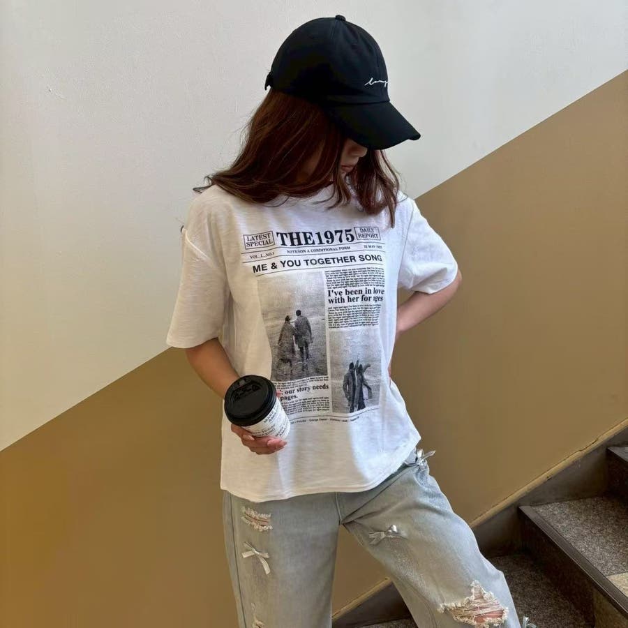 レディース/トップス/Tシャツ/フォト/プリント/ロゴ/古着風/ヴィンテージ感/かわいい/大人かわいい/大人っぽい/カジュアル/トレンド/韓国ファッション/着回し/ヘビロテ/リラックス/着痩せ/コスパ/おしゃれ/お出かけ/デート/普段着/普段使い/高見え/トレンドコーデ/休日コーデ/ 学生/社会人/オフィスカジュアル/インスタグラム/インスタ映え/半袖/夏/夏服/JO254113