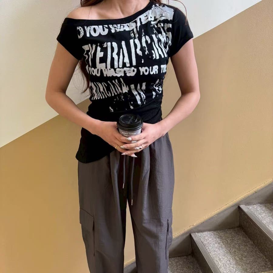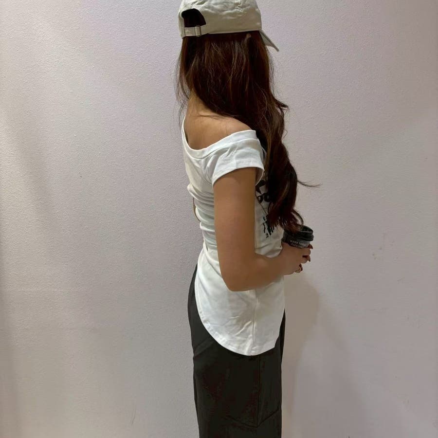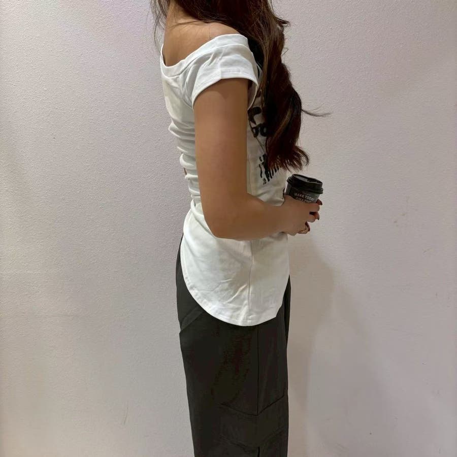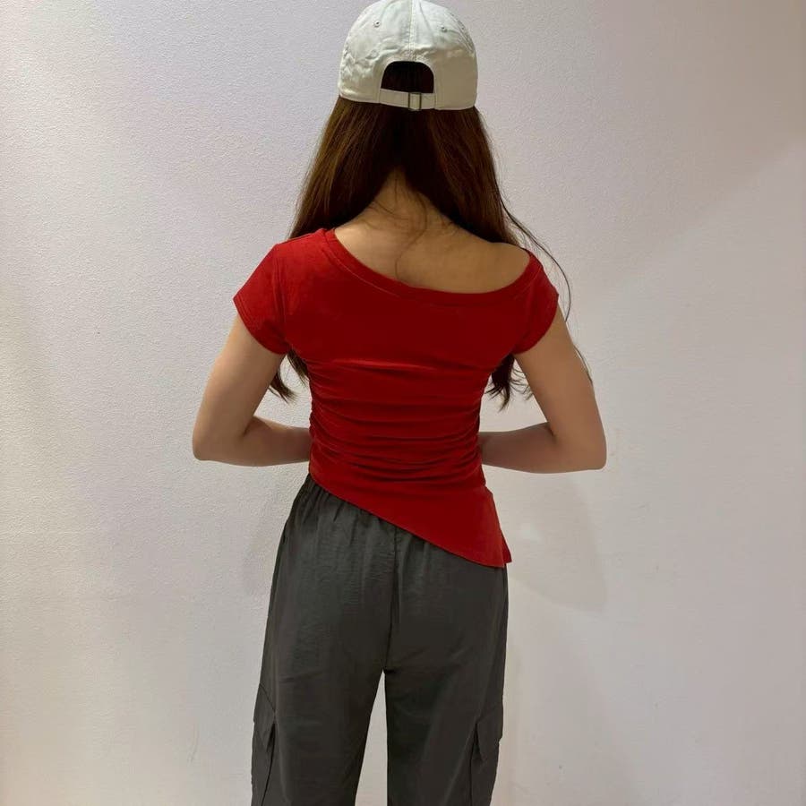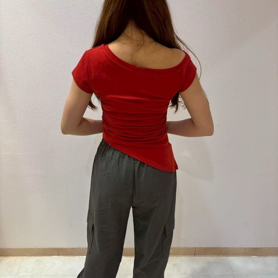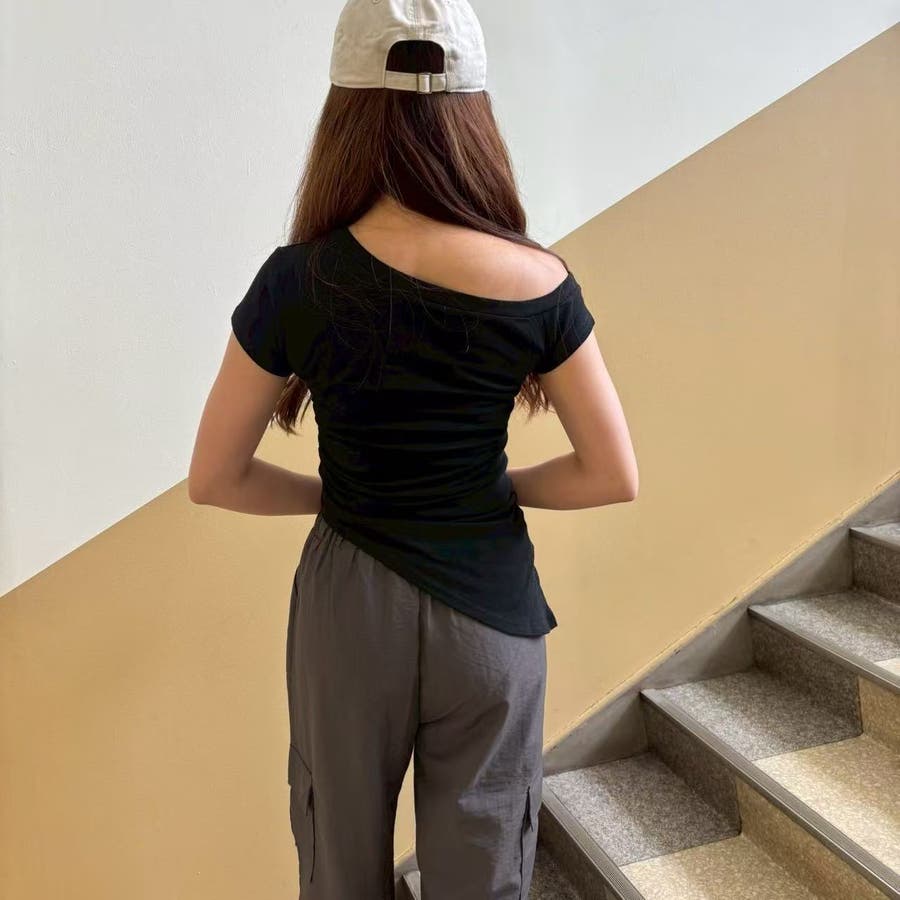 レディース/トップス/プルオーバー/カットソー/半袖/Tシャツ/アシンメトリ/シャーリング/ロゴ/カジュアル /大人かわいい/大人っぽい/ヘビロテ/トレンド/韓国ファッション/リラックス/着痩せ/コスパ/おしゃれ/きれいめ/お出かけ/デート/普段着/普段使い/かわいい/着回し/高見え/トレンドコーデ/休日コーデ/学生/社会人/オフィスカジュアル/インスタグラム/インスタ映え/夏/夏服/JO254335