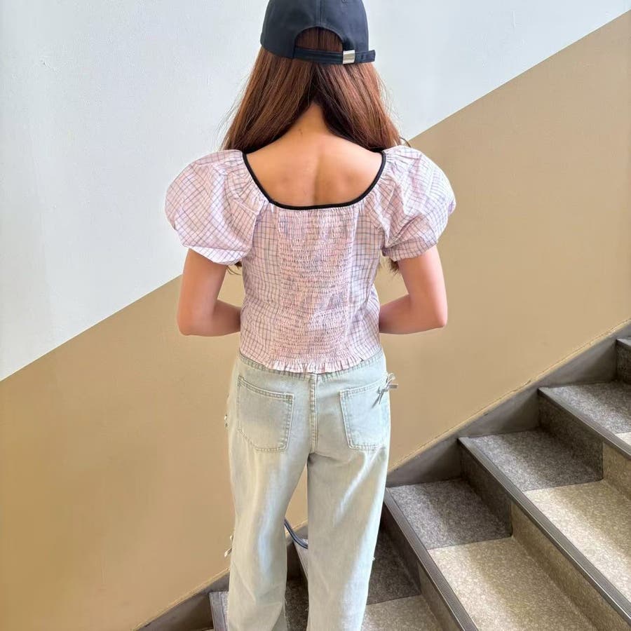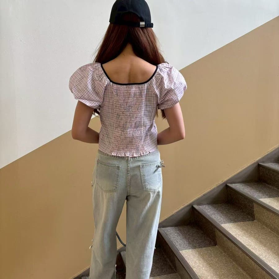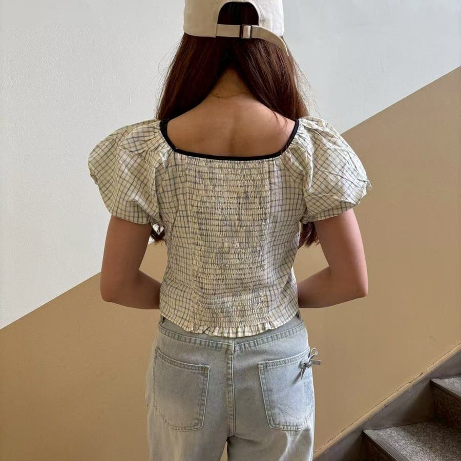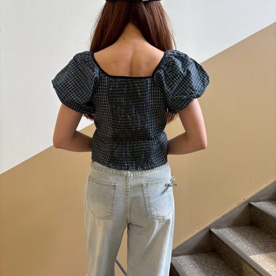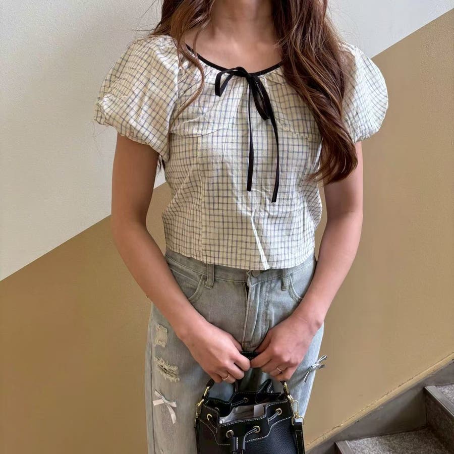 パフスリーブ半袖ショート丈トップス ぽわん袖が可愛い♪