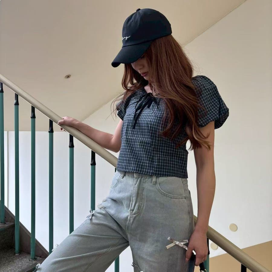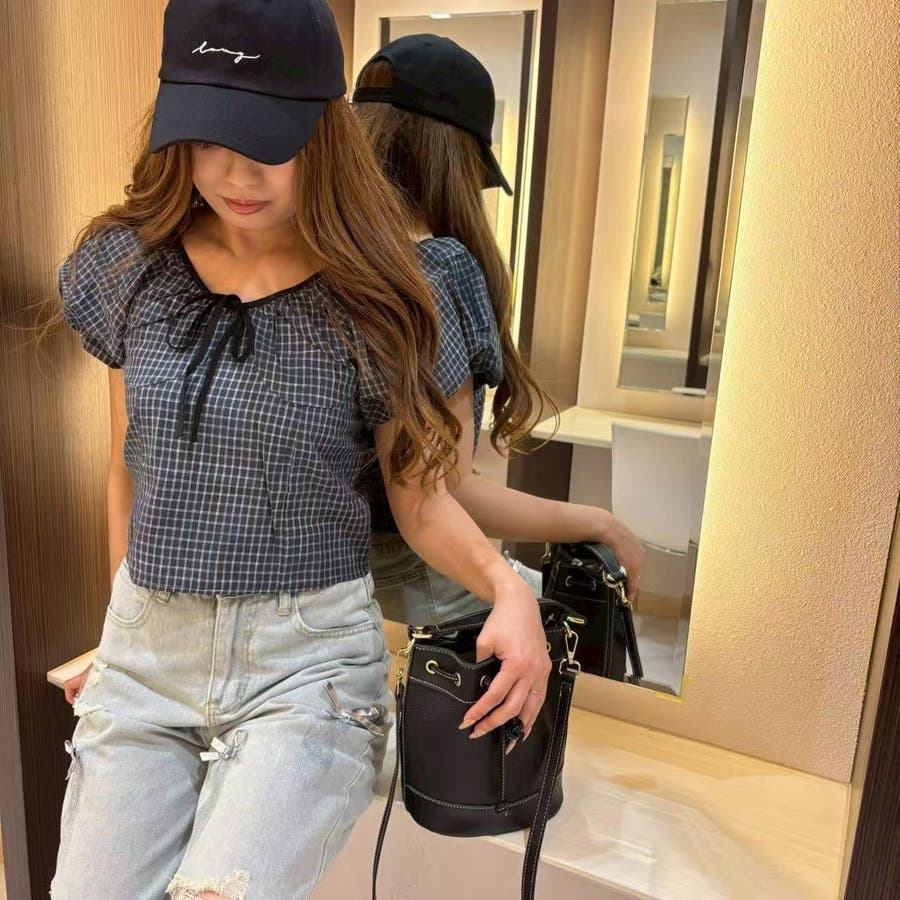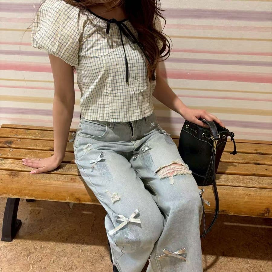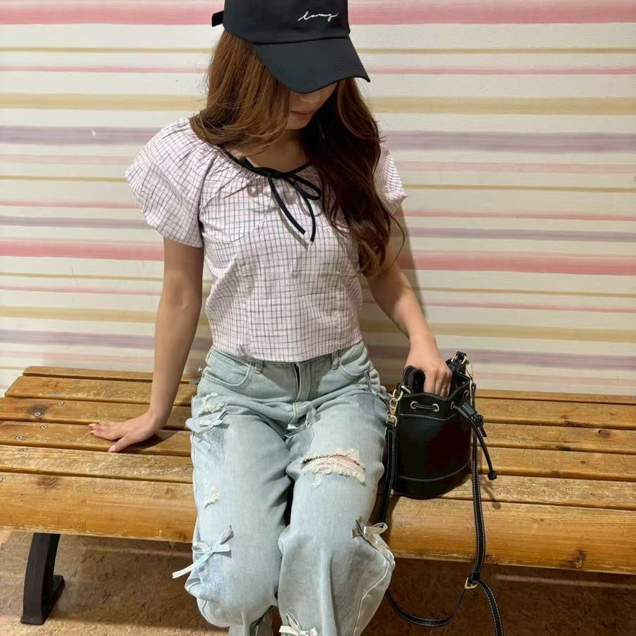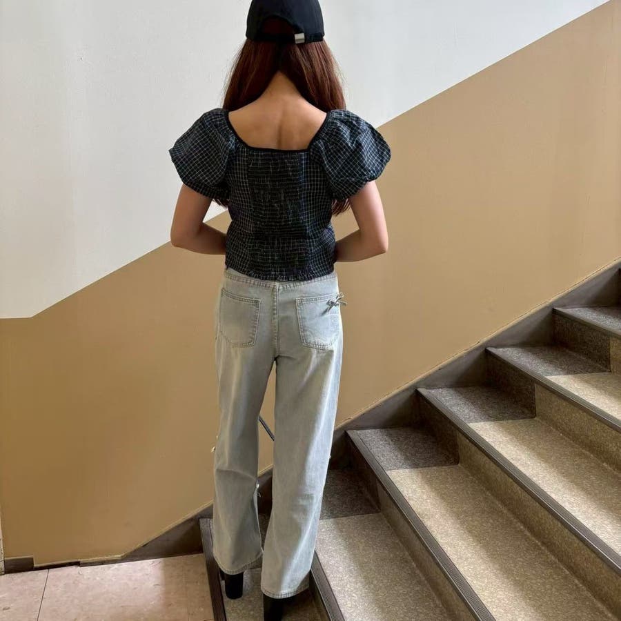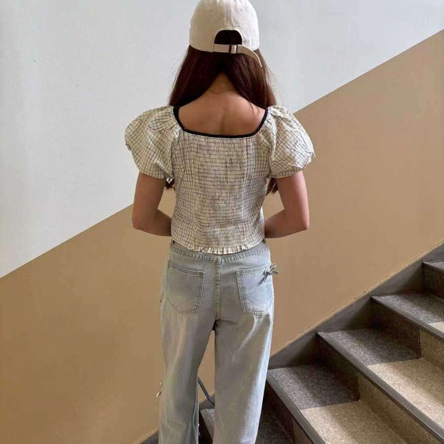パフスリーブ半袖ショート丈トップス ぽわん袖が可愛い♪
