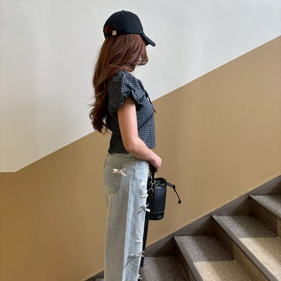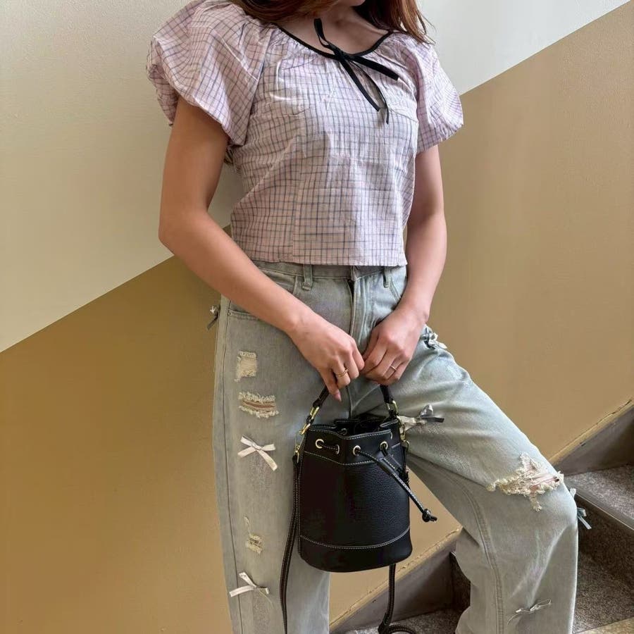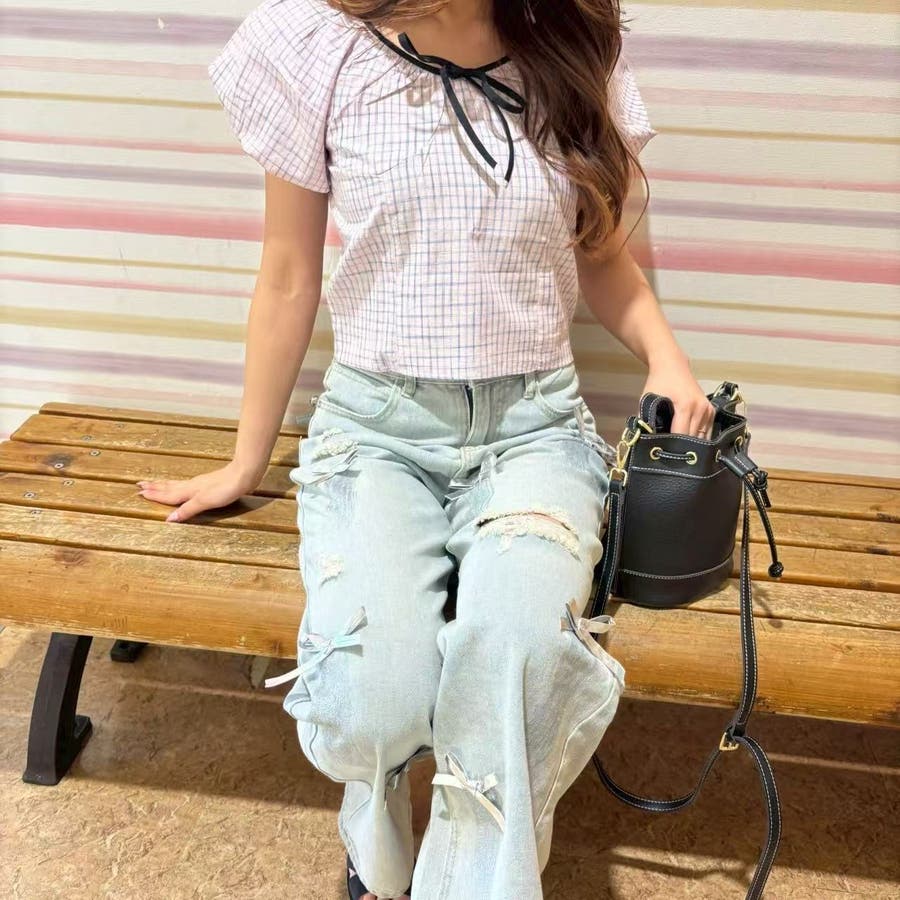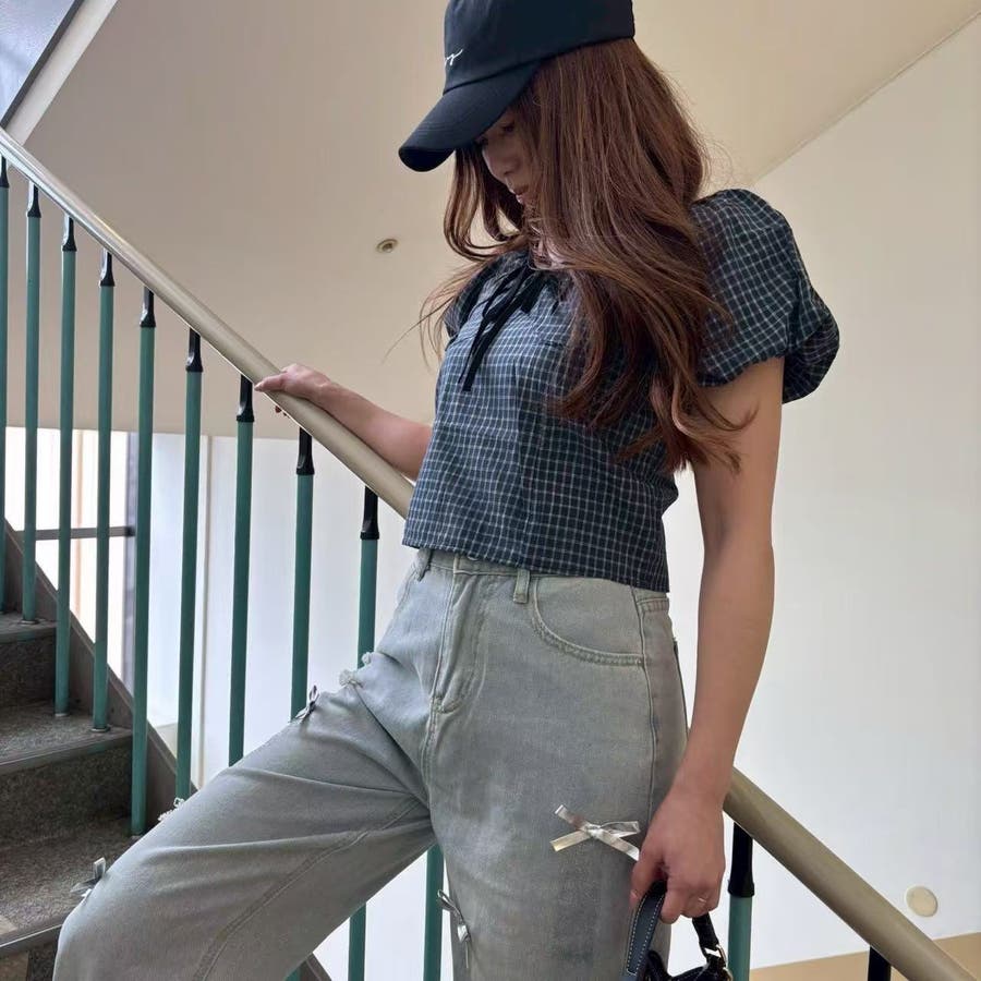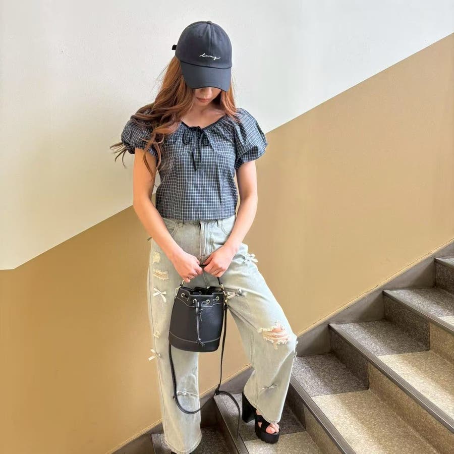 パフスリーブ半袖ショート丈トップス ぽわん袖が可愛い♪