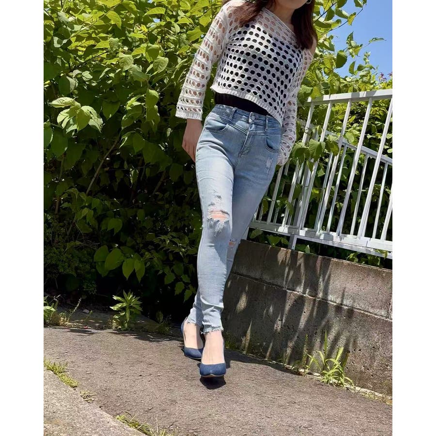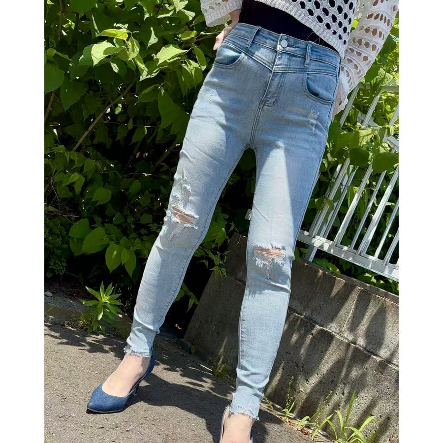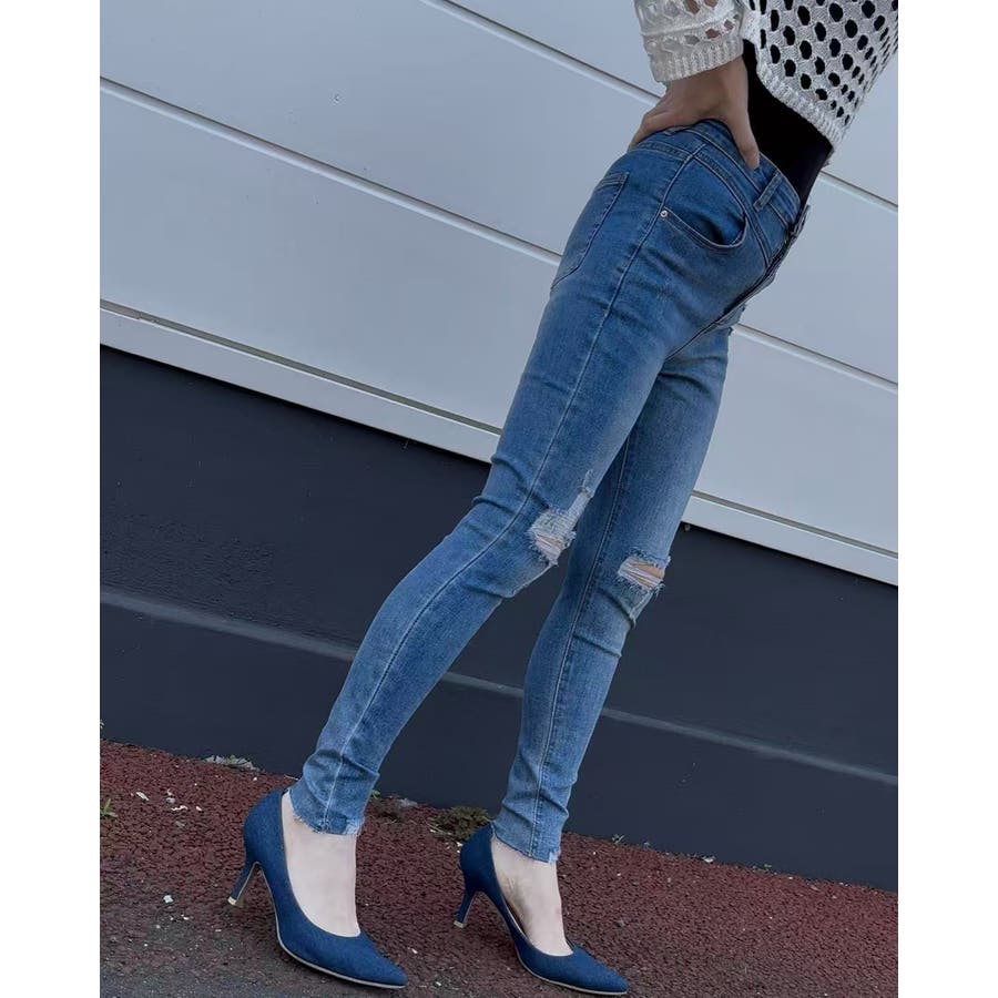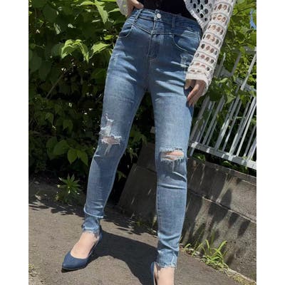 ダメージスキニーデニムパンツ
