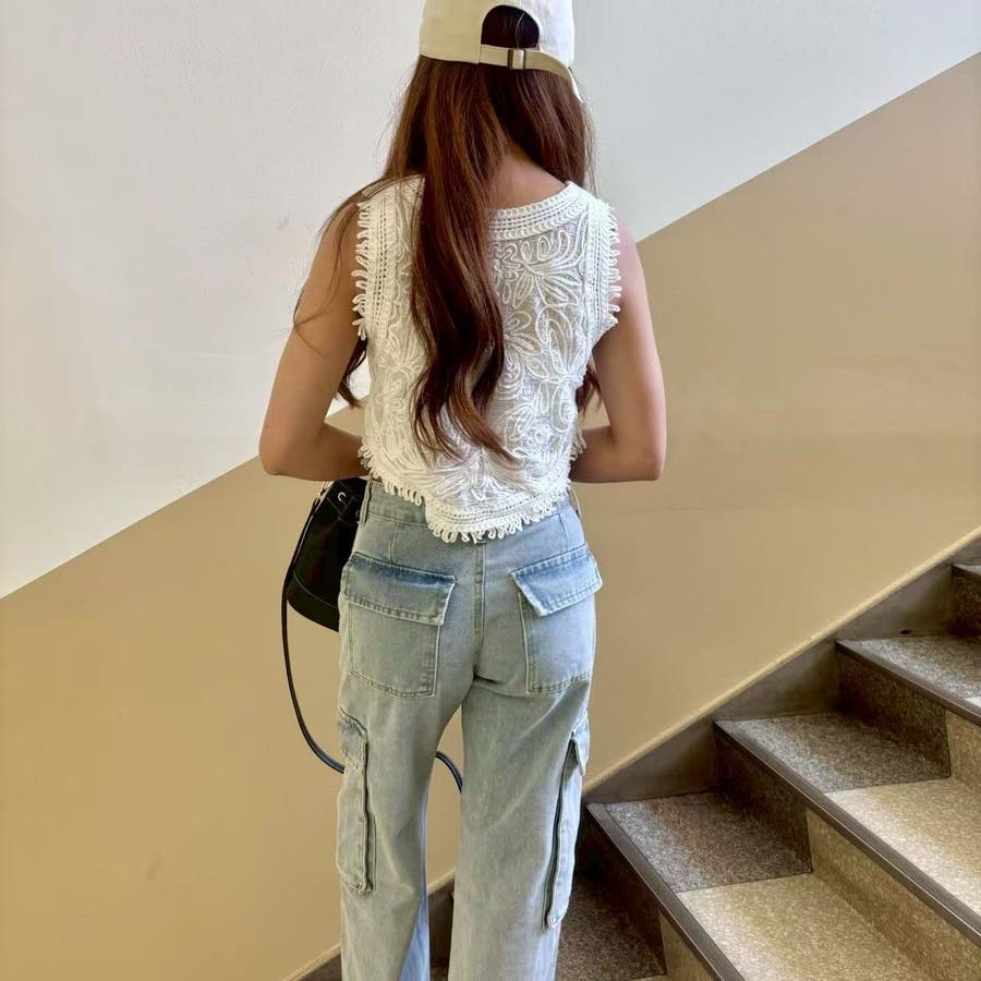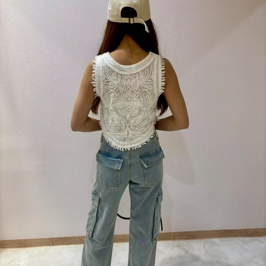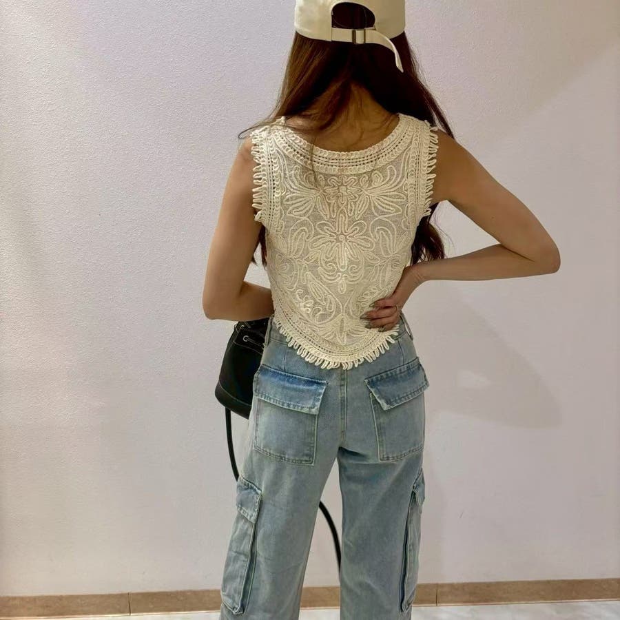 かわいい クロシェ かぎ針編み風 フリンジ ノースリーブ コスパ レディース トレンド カジュアル デート 韓国ファッション 着回し ストリート リゾート ワンピースコーデ レイヤードコーデ LETee 夏 夏服 JO256313