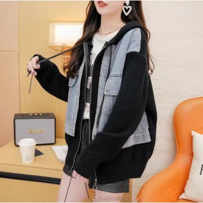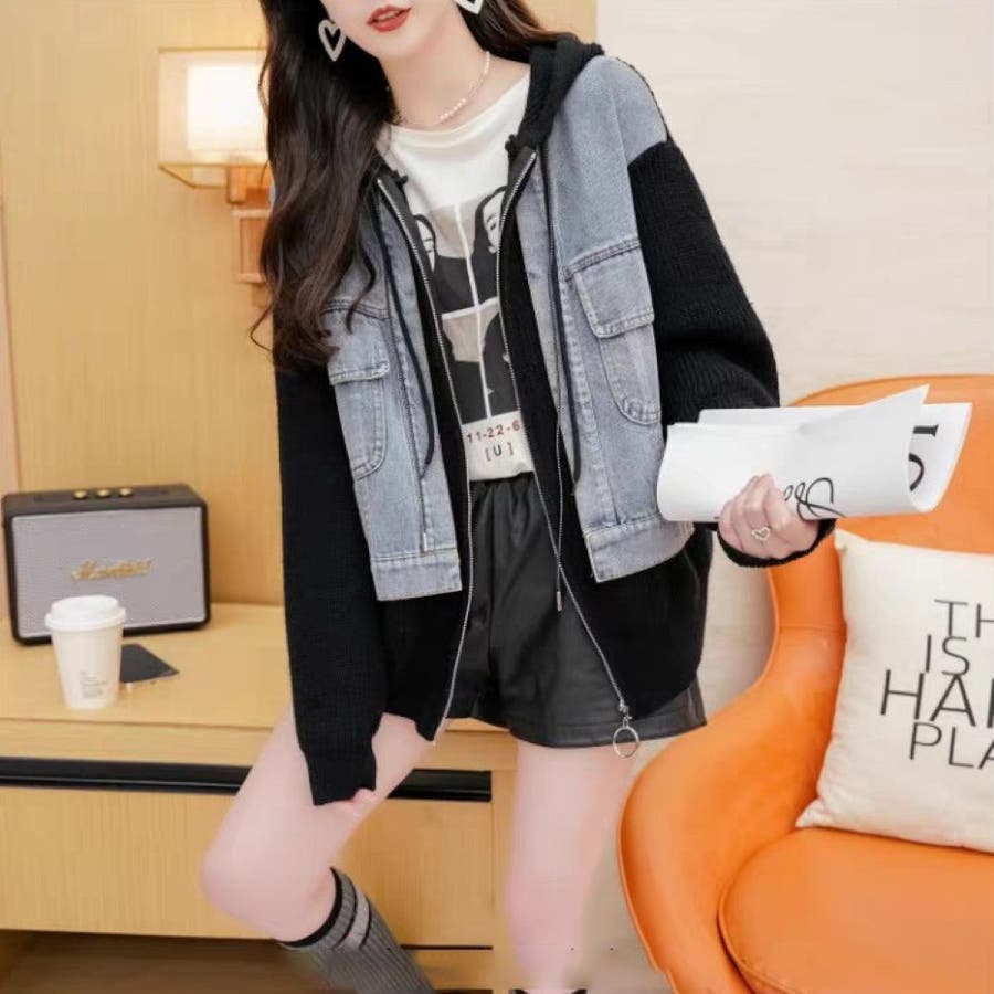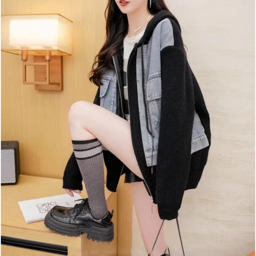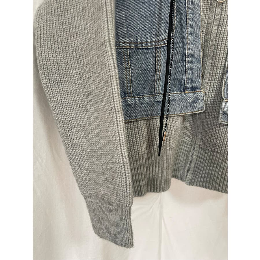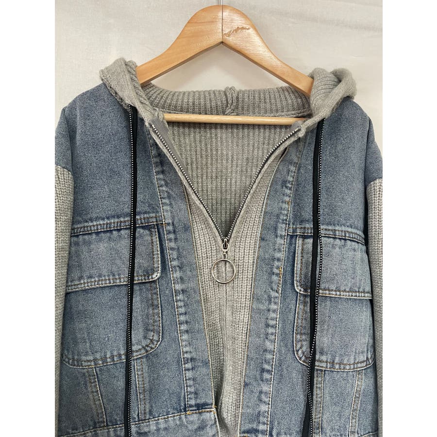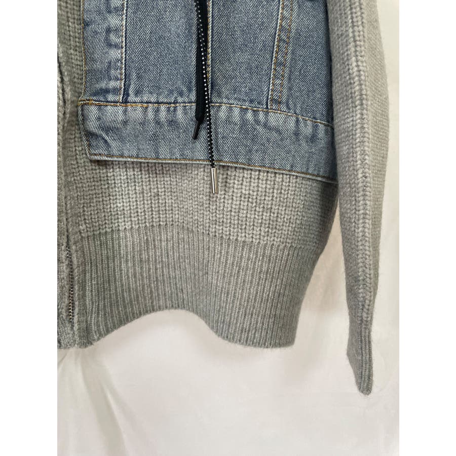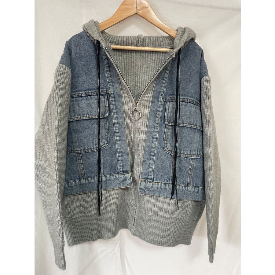 デニムドッキング ニットパーカー/ZIPUP