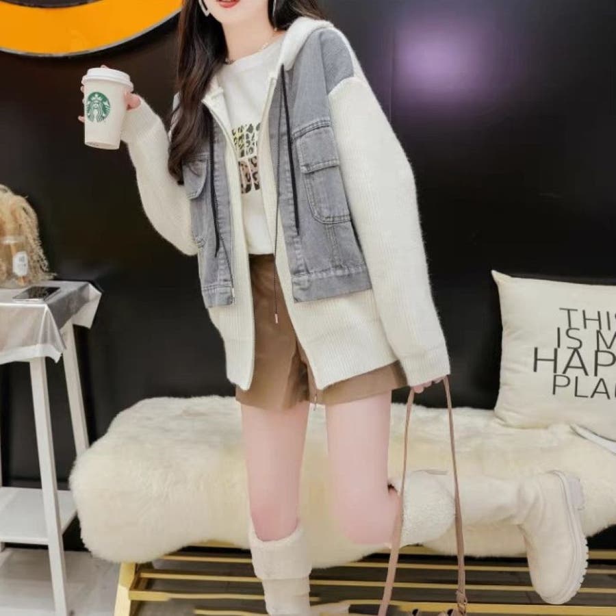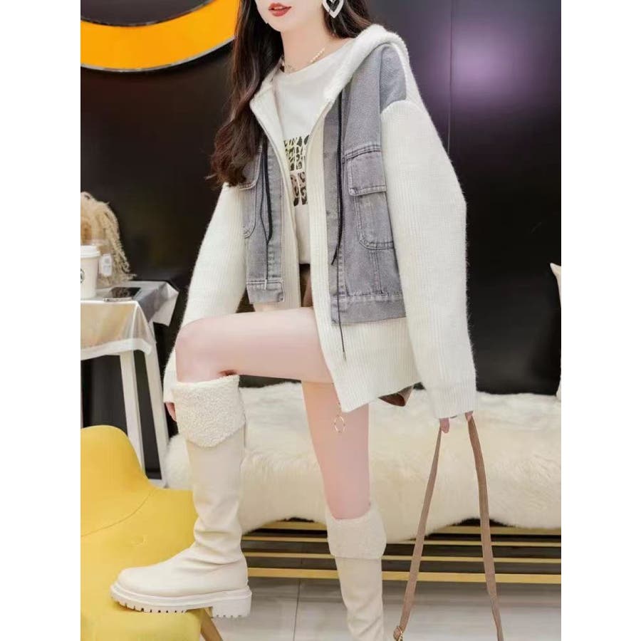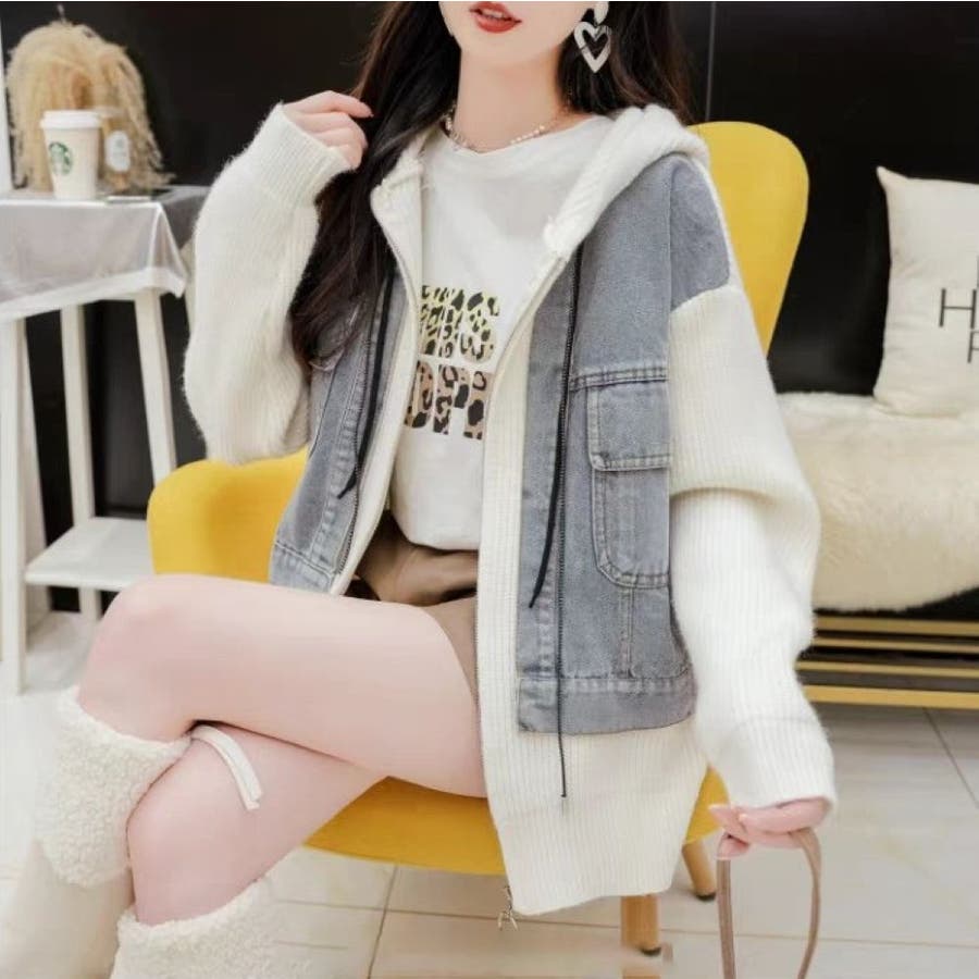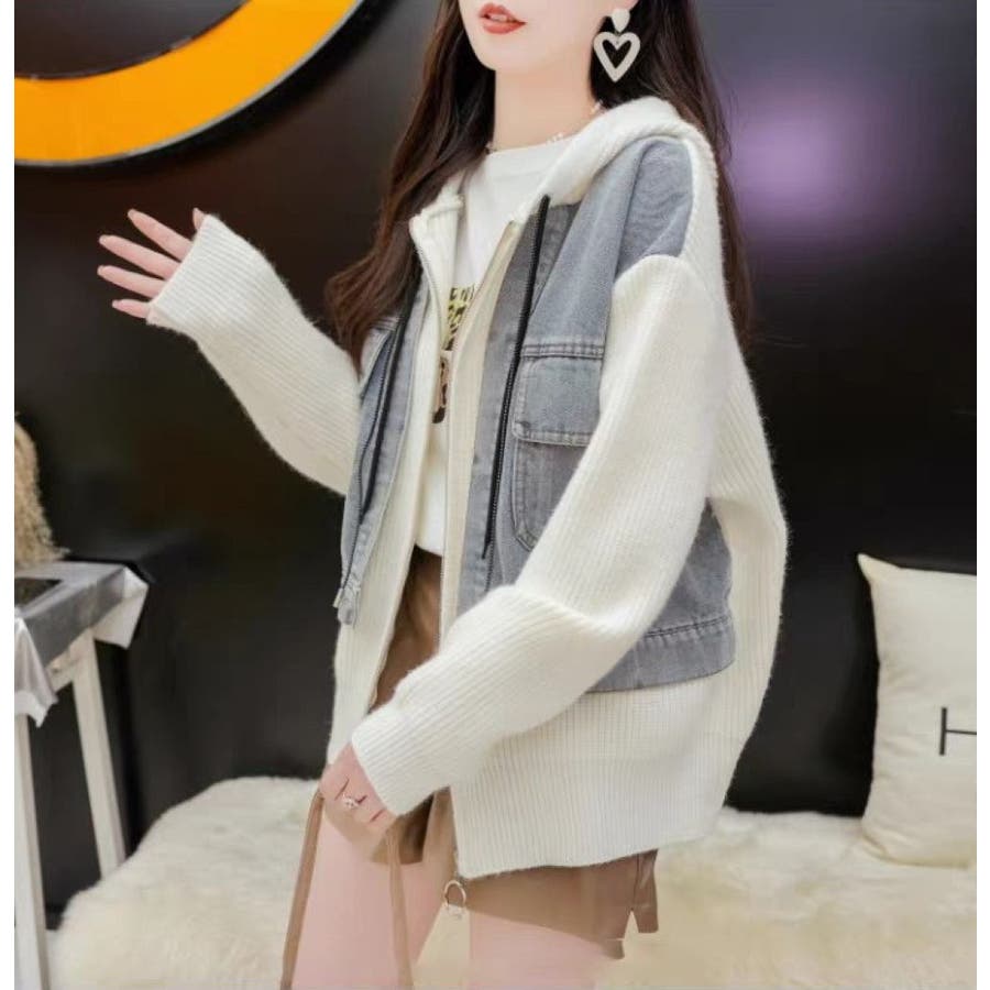 レディース ニットジャケット ゆったり カジュアル 大人かわいい ヘビロテ トレンド 大きいサイズ パーカー 韓国ファッション リラックス ビックシルエット 着痩せ おしゃれ お出かけ デート 普段使い かわいい 着回し 高見え 秋 秋服 冬 冬服 JO259608
