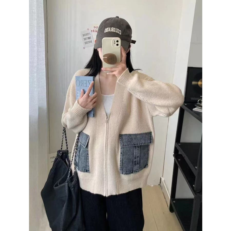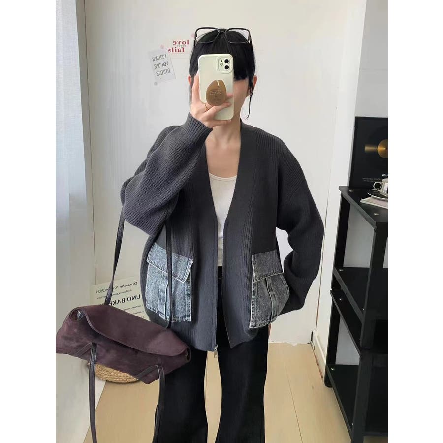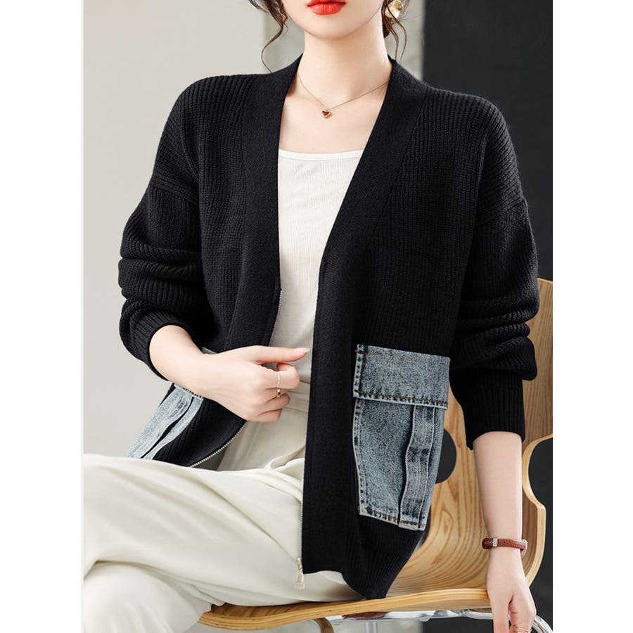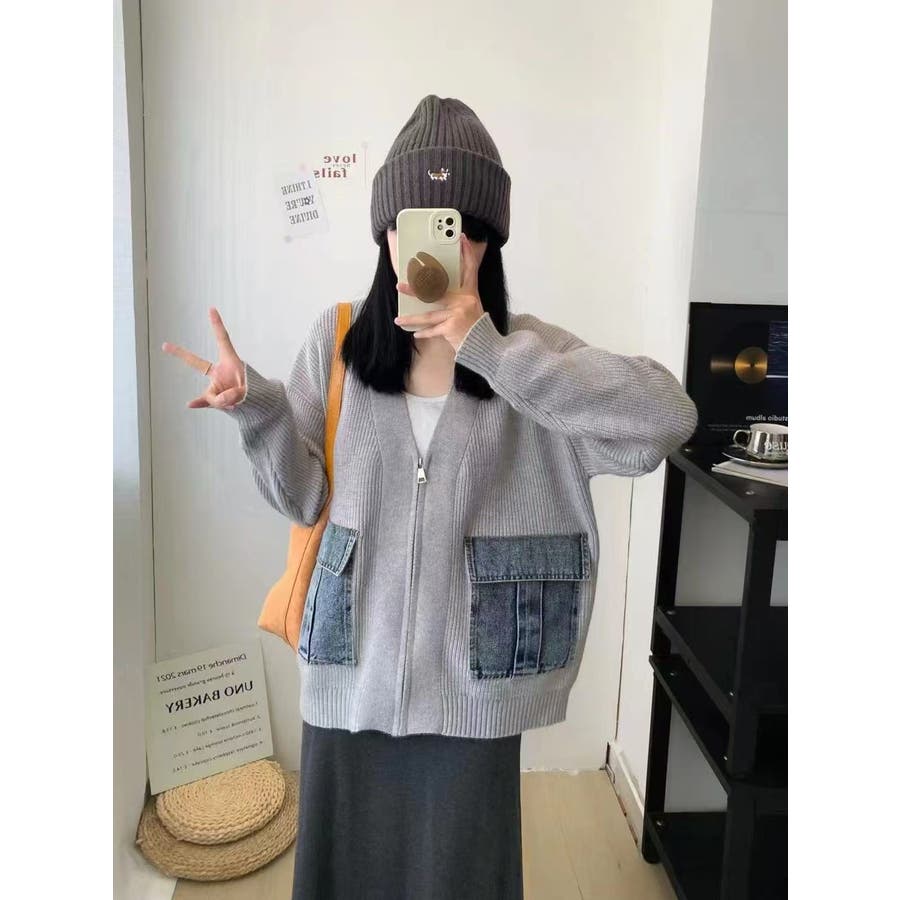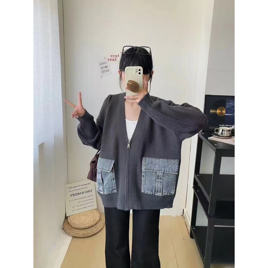 レディース ニットカーディガン ジップアップ Vカーデ デニムポケット ゆったり カジュアル 大人かわいい ヘビロテ トレンド 大きいサイズ 韓国ファッション リラックス ビックシルエット 着痩せ おしゃれ お出かけ デート 普段使い かわいい 着回し 高見え 秋 秋服 冬 冬服 JO259611
