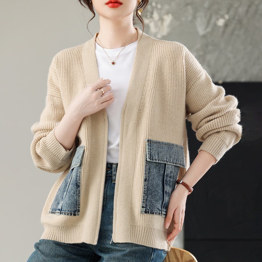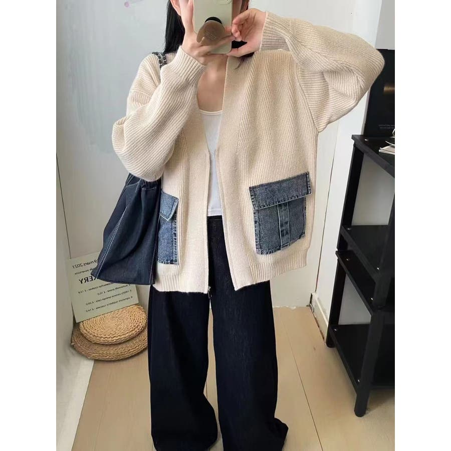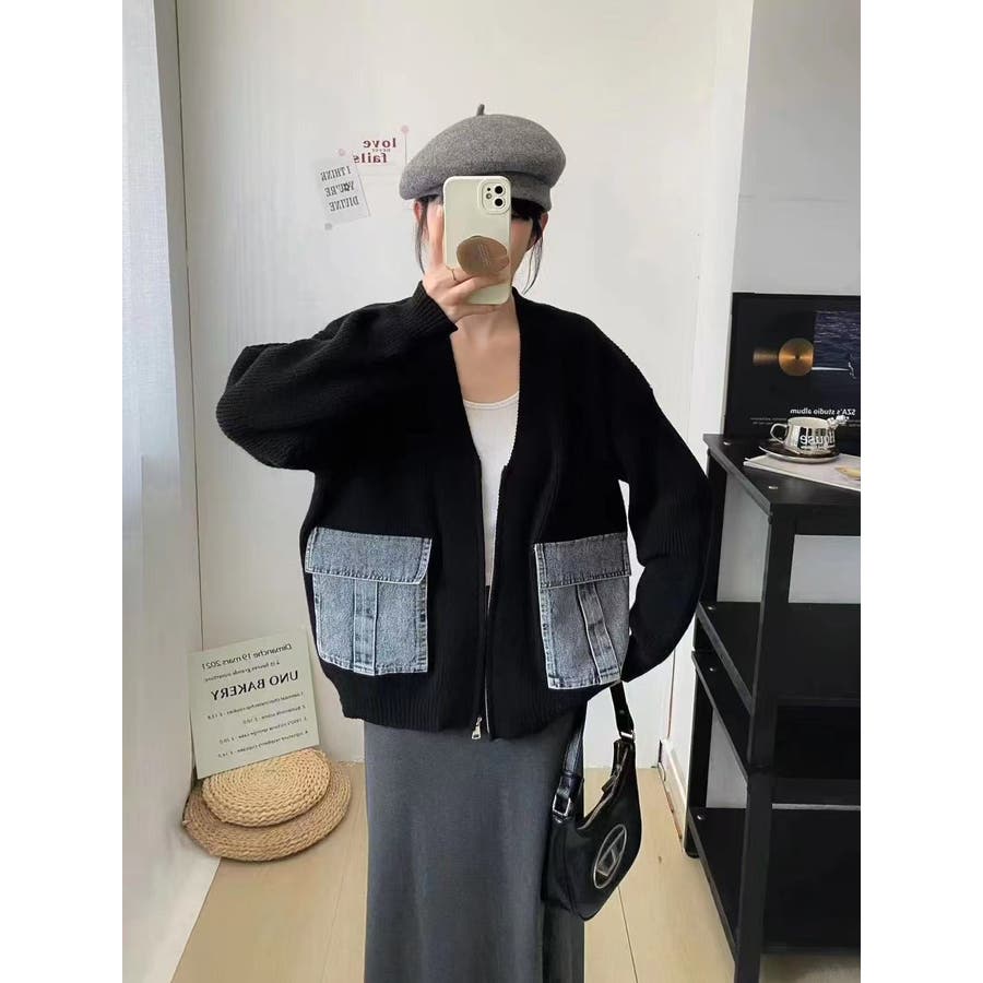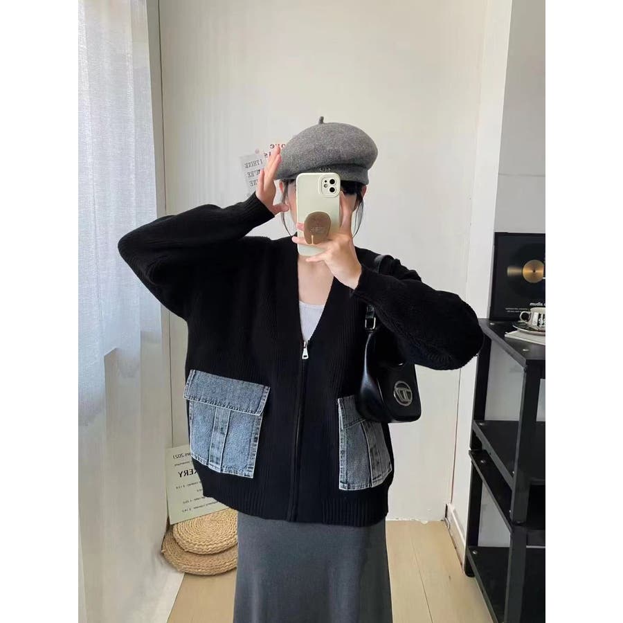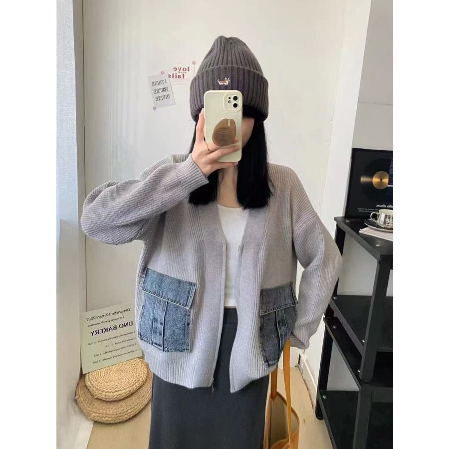 レディース ニットカーディガン ジップアップ Vカーデ デニムポケット ゆったり カジュアル 大人かわいい ヘビロテ トレンド 大きいサイズ 韓国ファッション リラックス ビックシルエット 着痩せ おしゃれ お出かけ デート 普段使い かわいい 着回し 高見え 秋 秋服 冬 冬服 JO259611