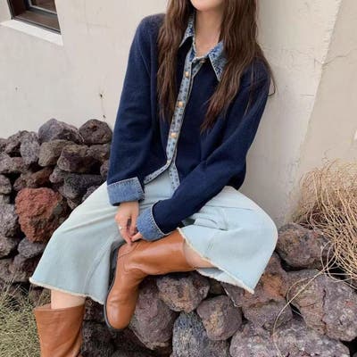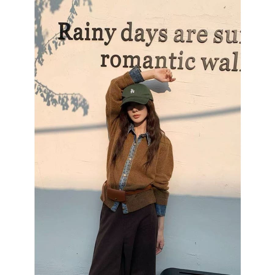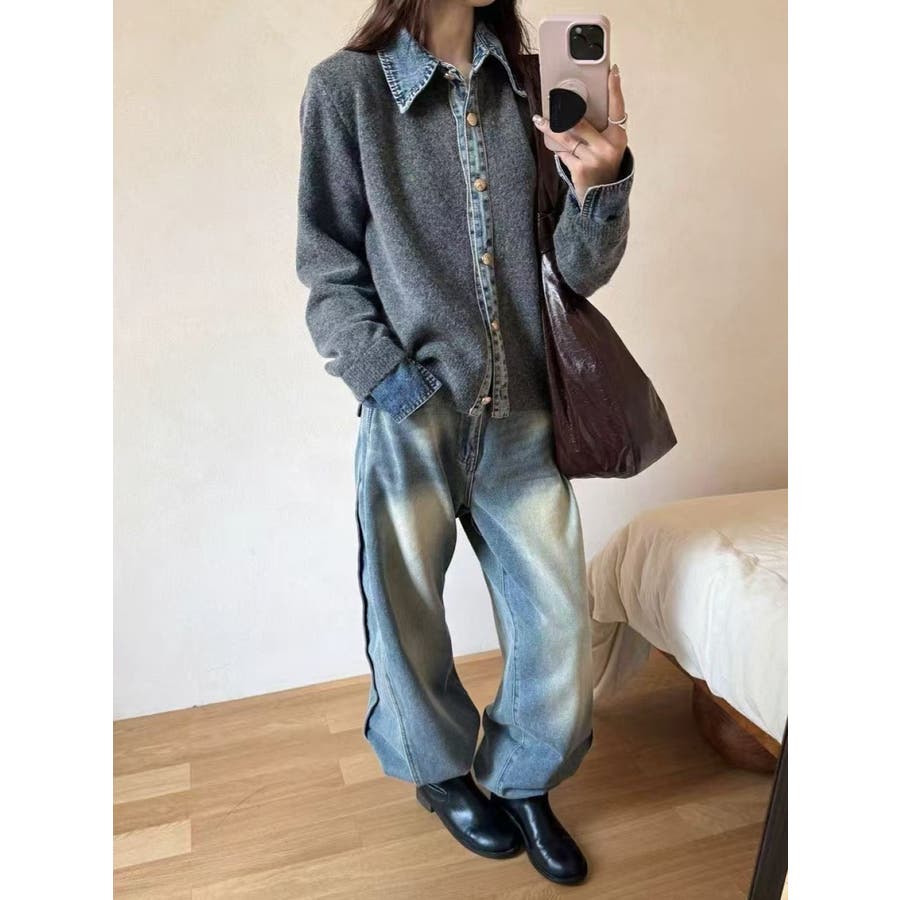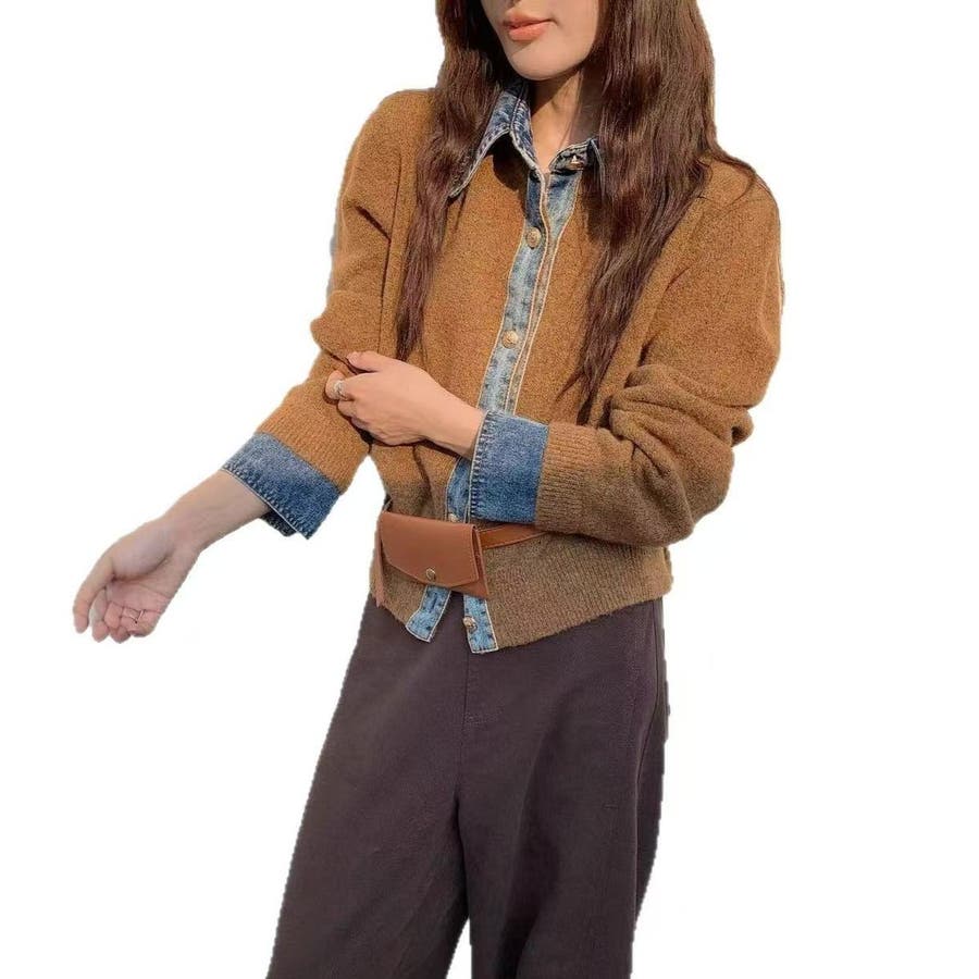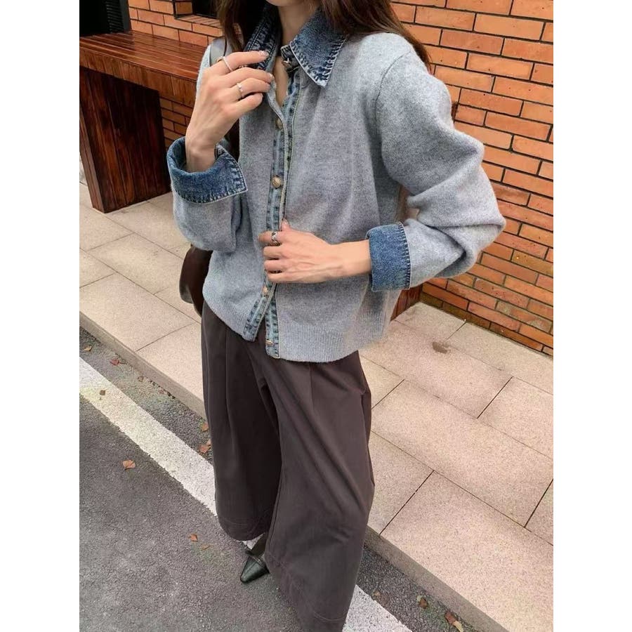 レディース/トップス/ニット/カーディガン/デニム/異素材/切り替え/長袖/ゆったり/カジュアル/大人かわいい/ヘビロテ/トレンド/韓国ファッション/リラックス/大きいサイズ/着痩せ/体型隠し/コスパ/おしゃれ/お出かけ/デート/休日コーデ/オフィス/学生/普段着/普段使い/かわいい/着回し/高見え/インスタグラム/インスタ映え/秋/秋服/冬/冬服/LETee/JO25B311