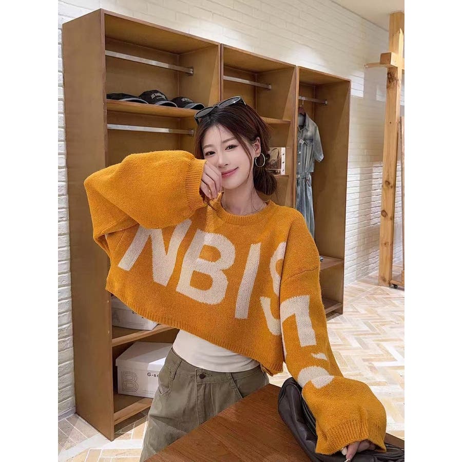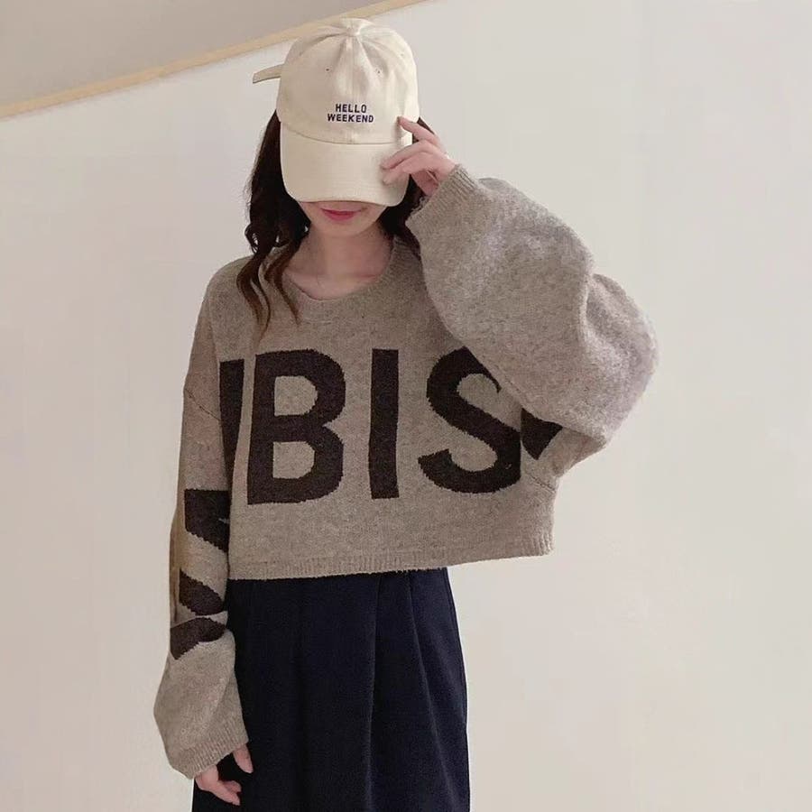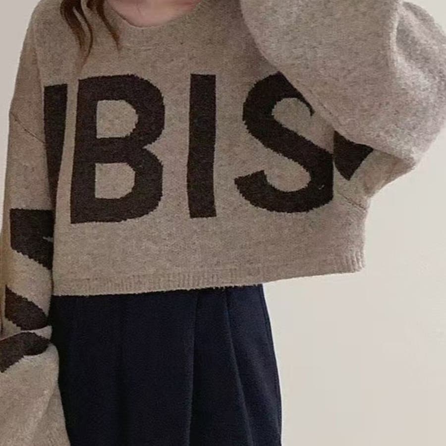 ロゴジャカードニットプルオーバー ショート丈