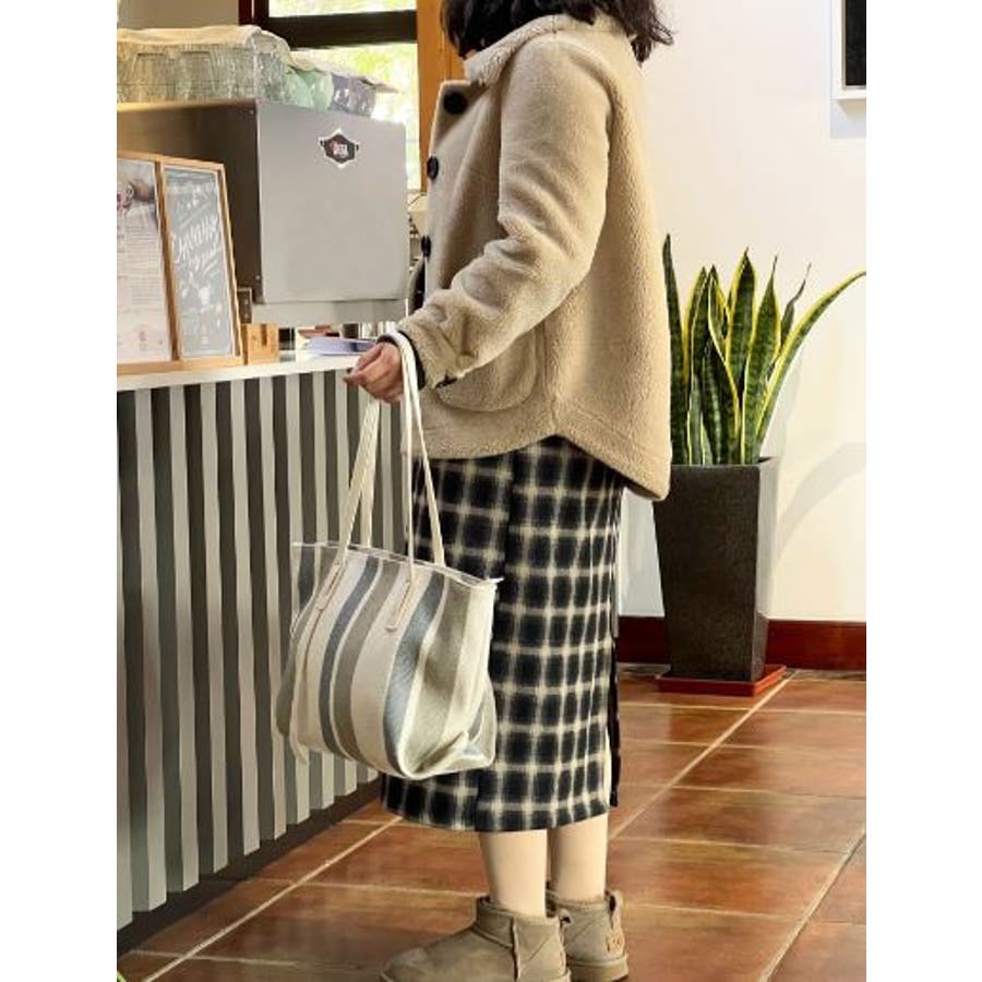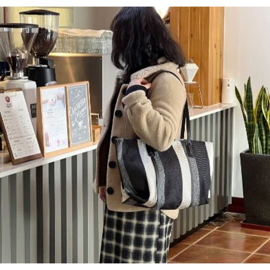 大人かっこいい出来る女のさわやかストライプトートバッグです。□伸縮性:なし