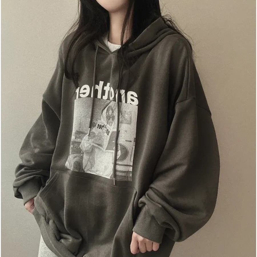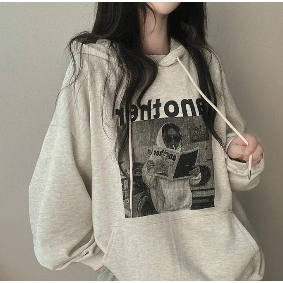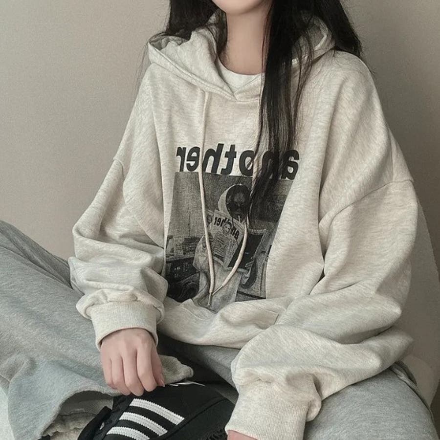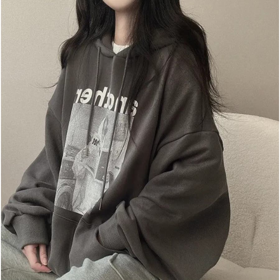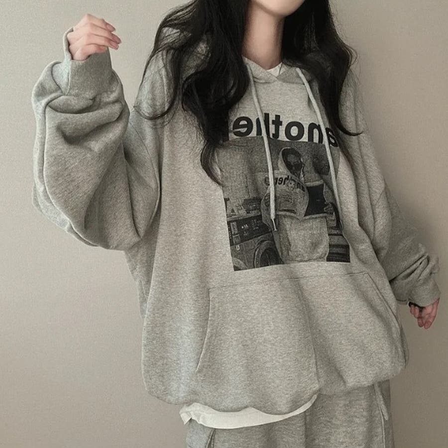 フォトプリントパーカー ビックシルエット トレーナ
