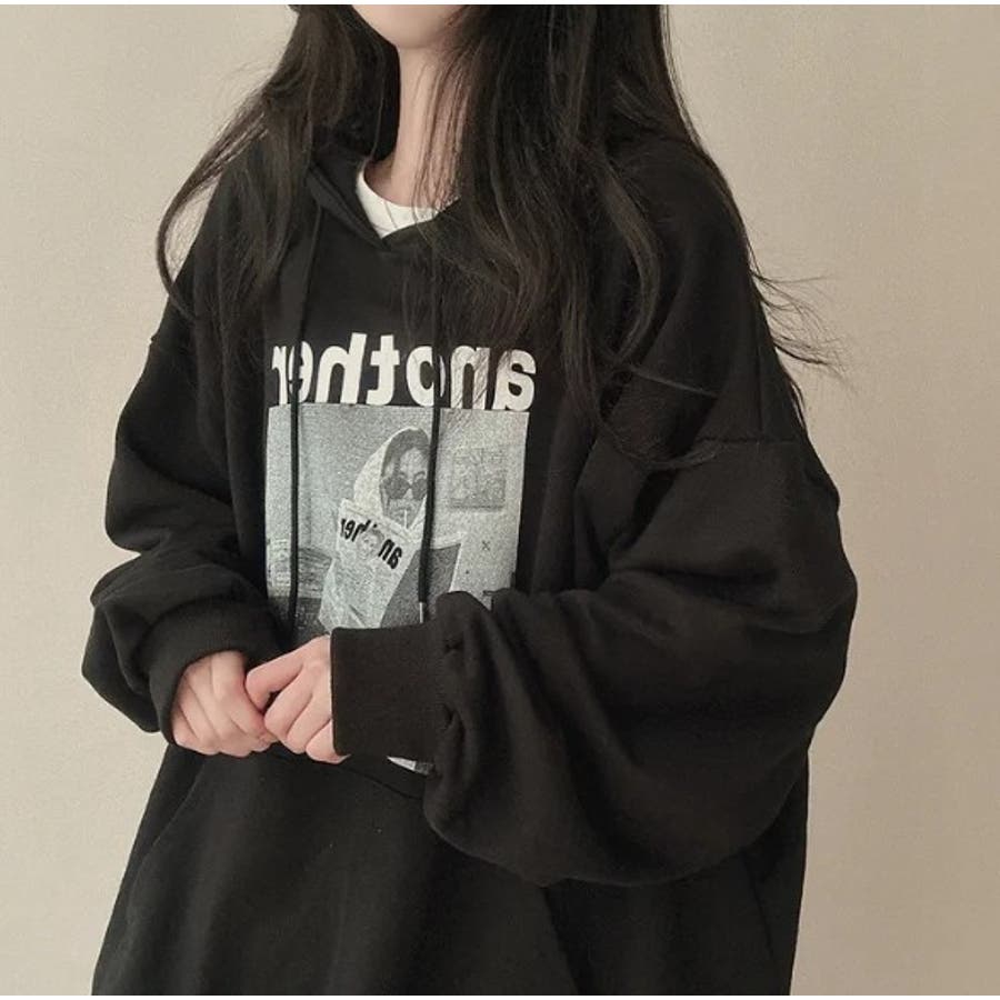 フォトプリントパーカー ビックシルエット ストリート パーカー フーディー