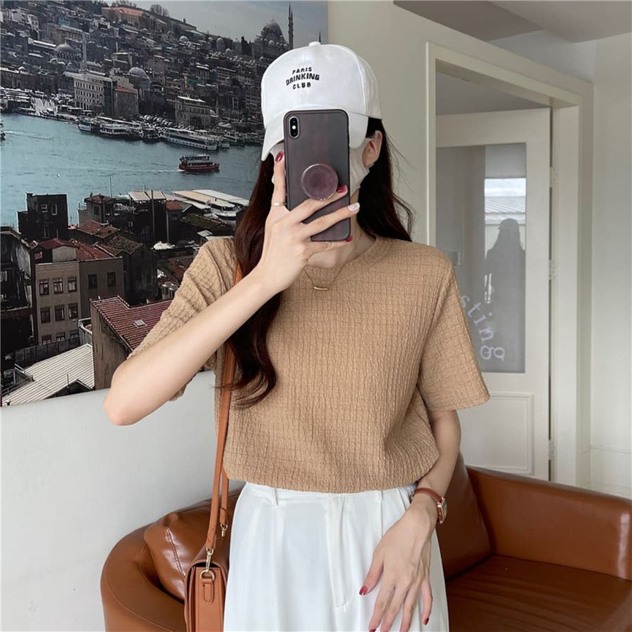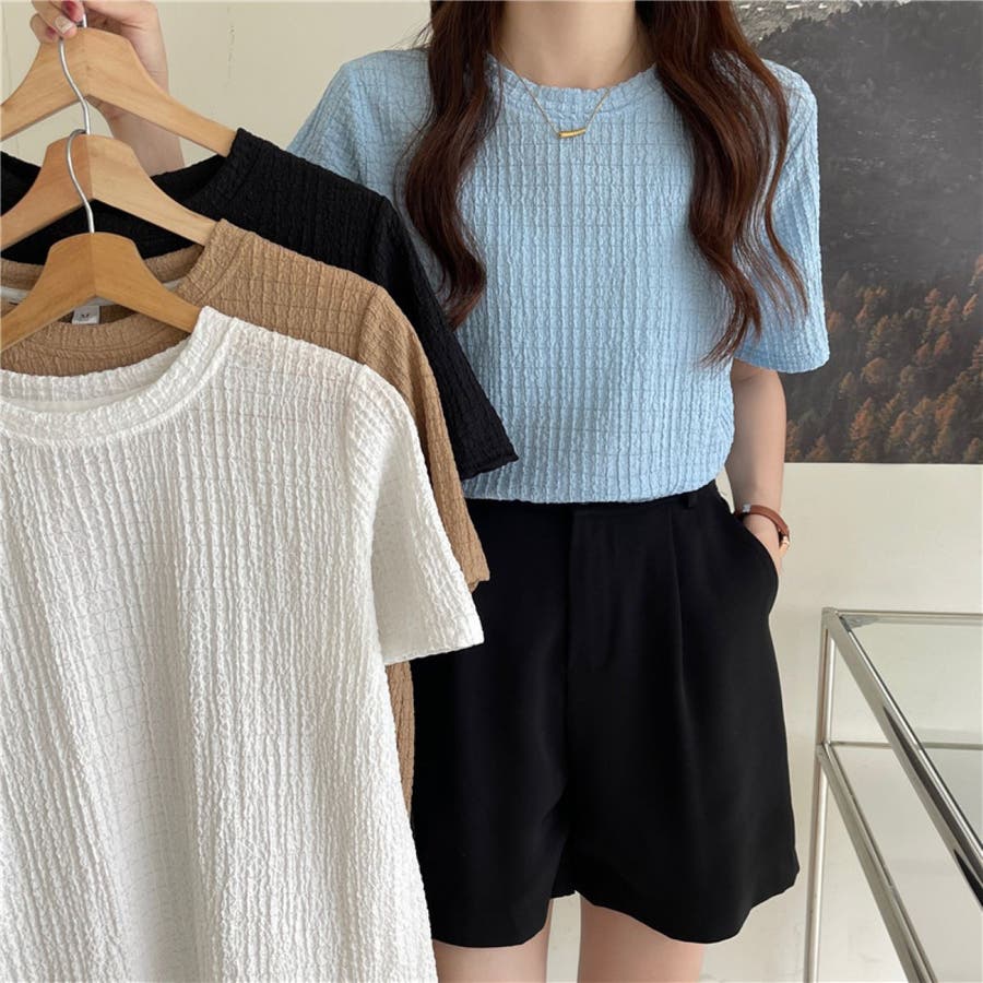 フクレ織 半袖トップス キレイめ レディース