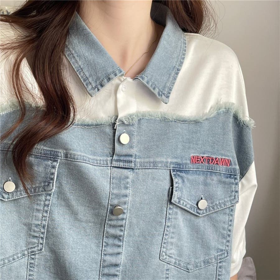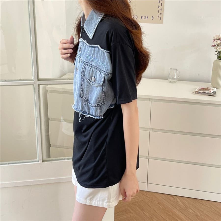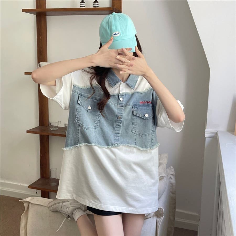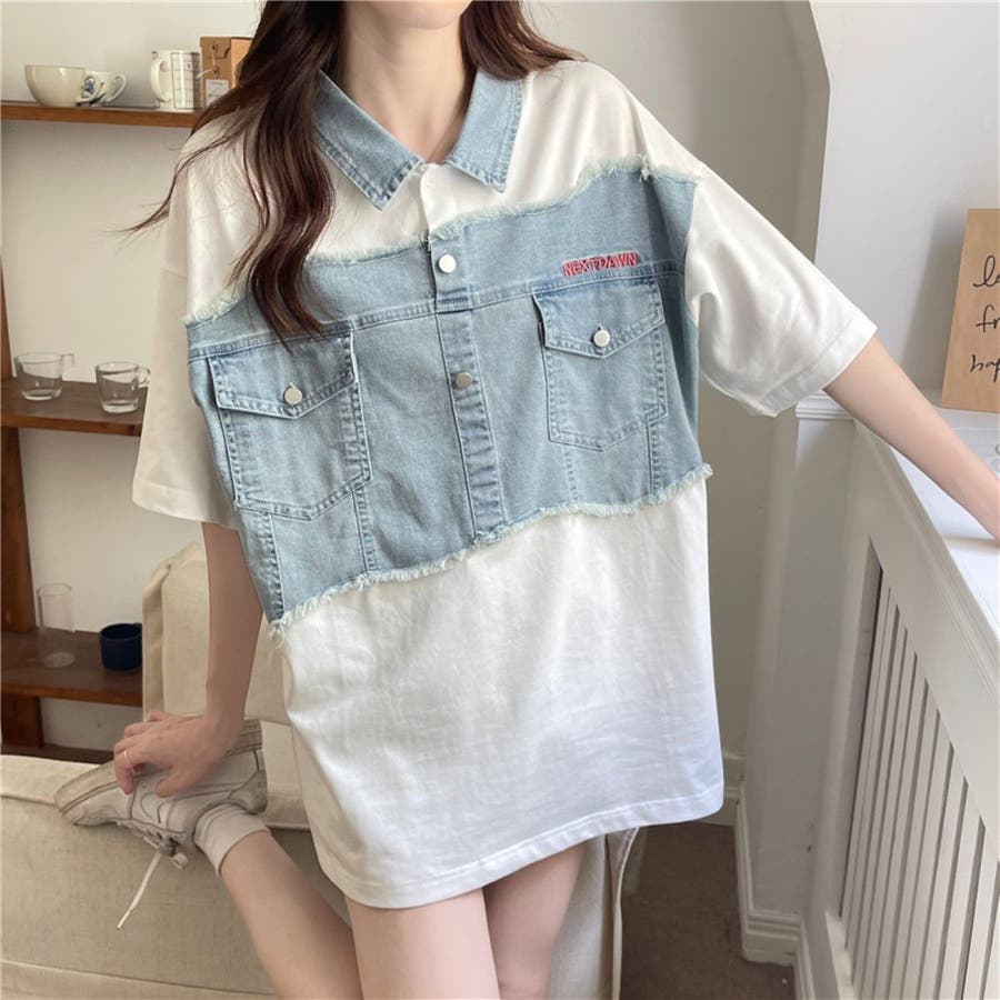 トップス デニム使い レディース 半袖 カジュアル キレイめ ヘビロテ トレンド トップス セクシー 着痩せ コスパ おしゃれ お出かけ デート 普段着 普段使い 大人かわいい 着回し 高見え 夏