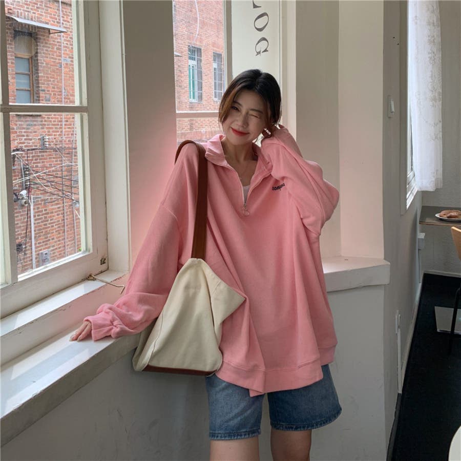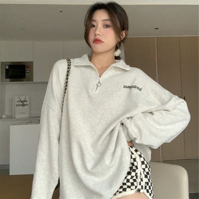 ZIP使い レディース 長袖 ゆったり カジュアル ヘビロテ トレンド 大きいサイズ トップス 韓国ファッション リラックス ビックシルエット 着痩せ コスパ おしゃれ お出かけ デート 普段着 普段使い かわいい 着回し /春/春服 LT253310