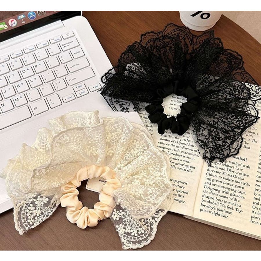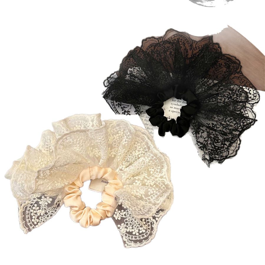 ヘアアクセサリー レース シュシュ レディース オールシーズン かわいい 高見え おしゃれ 実用的 大きめレース リボン インスタ映え デート LT25702