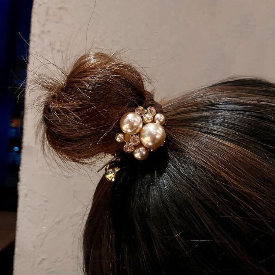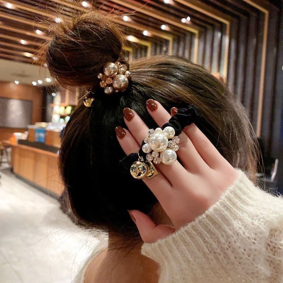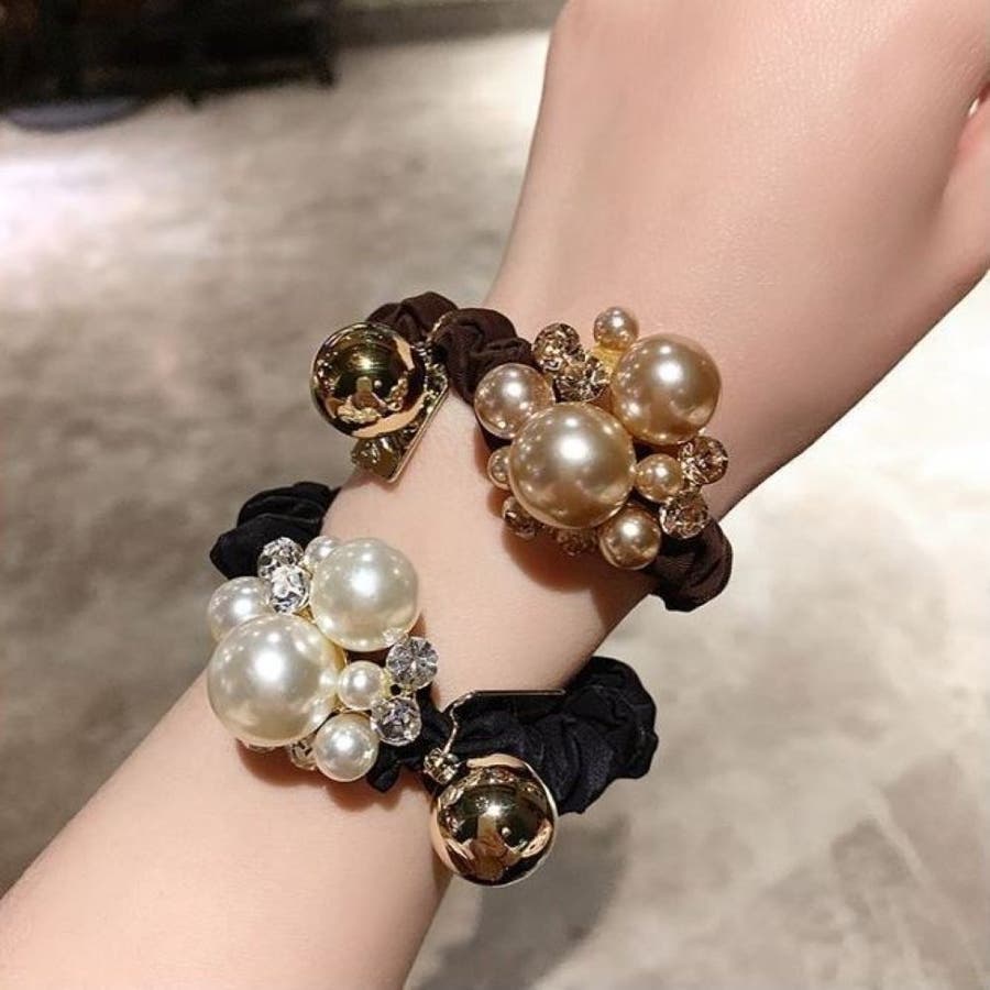 ヘアアクセサリー シュシュ レディース オールシーズン かわいい 高見え おしゃれ 実用的 ラインストーン キラキラ パール インスタ映え デート LT25703