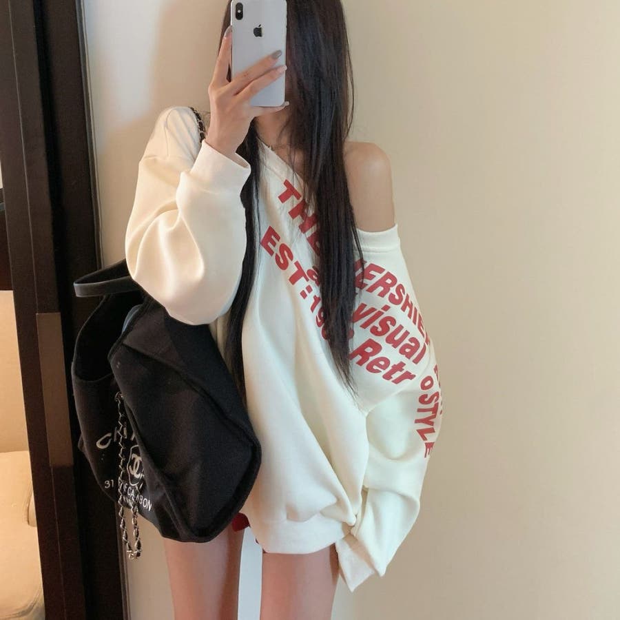トレーナー イレギュラープリント レディース 長袖 ゆったり ヘビロテ トレンド トップス 韓国ファッション リラックス 着痩せ コスパ 普段使い カジュアル かわいい 着回し LT259302
