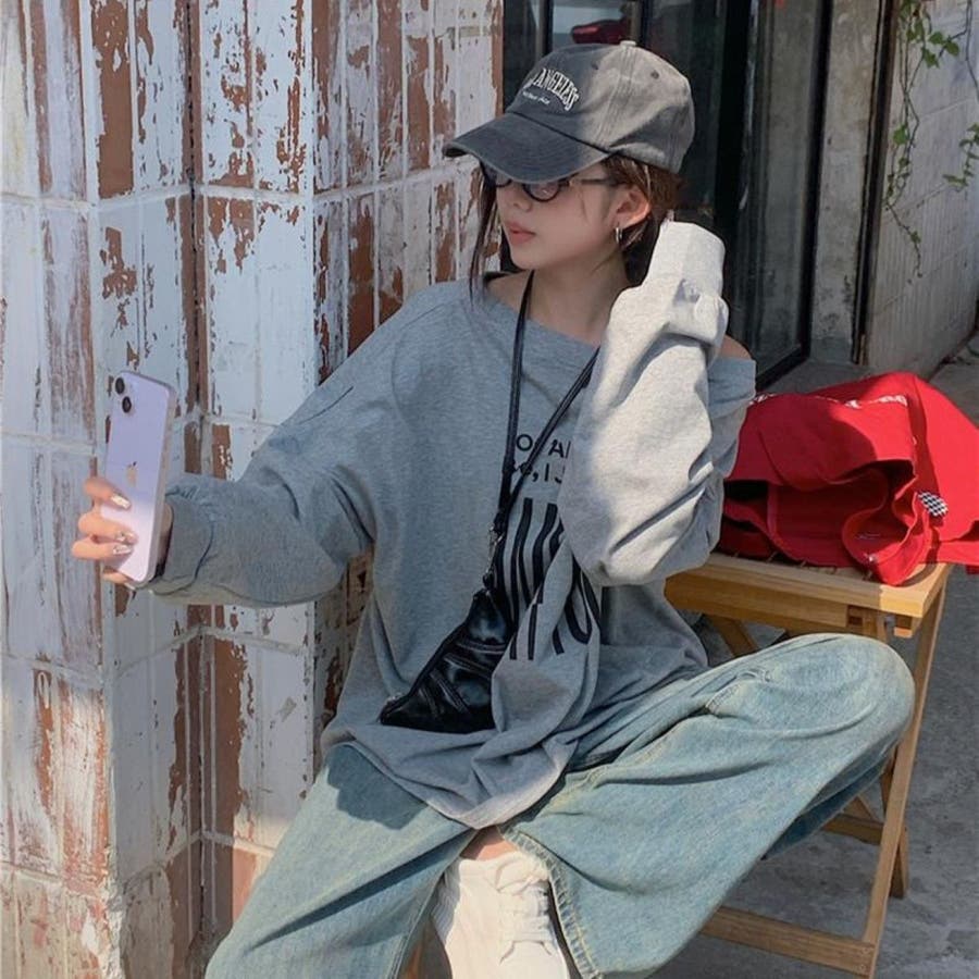 カットソー トップス レディース 長袖 ゆったり ヘビロテ トレンド 大きいサイズ 韓国ファッション リラックス ビックシルエット 着痩せ コスパ 普段使い カジュアル かわいい 着回し 前後着用 オフショルダー 秋 秋服 LT259303