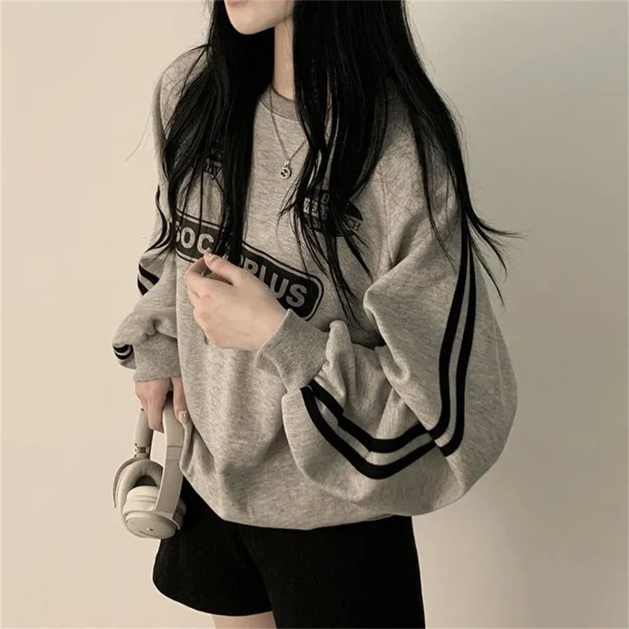 カジュアル トレーナー トップス 袖ライン ヘビロテ トレンド 韓国ファッション コスパ おしゃれ お出かけ デート 普段使い かわいい トレンドコーデ 休日コーデ 学生 インスタグラム インスタ映え オーバーサイズ ビックシルエット ストリート ドロップショルダー 秋 秋服 冬 冬服 LT259304