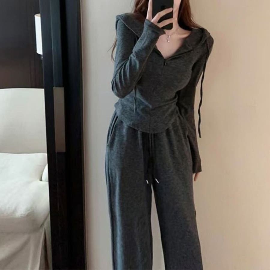 セットアップ パーカー&パンツ ショートパーカー リラックス B系 韓国ファッション 韓国 長袖パーカー&スェットパンツ ストリート LT259401