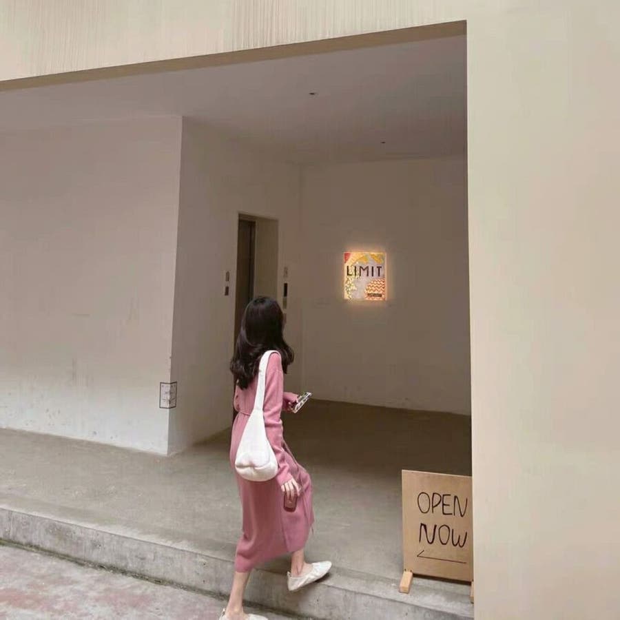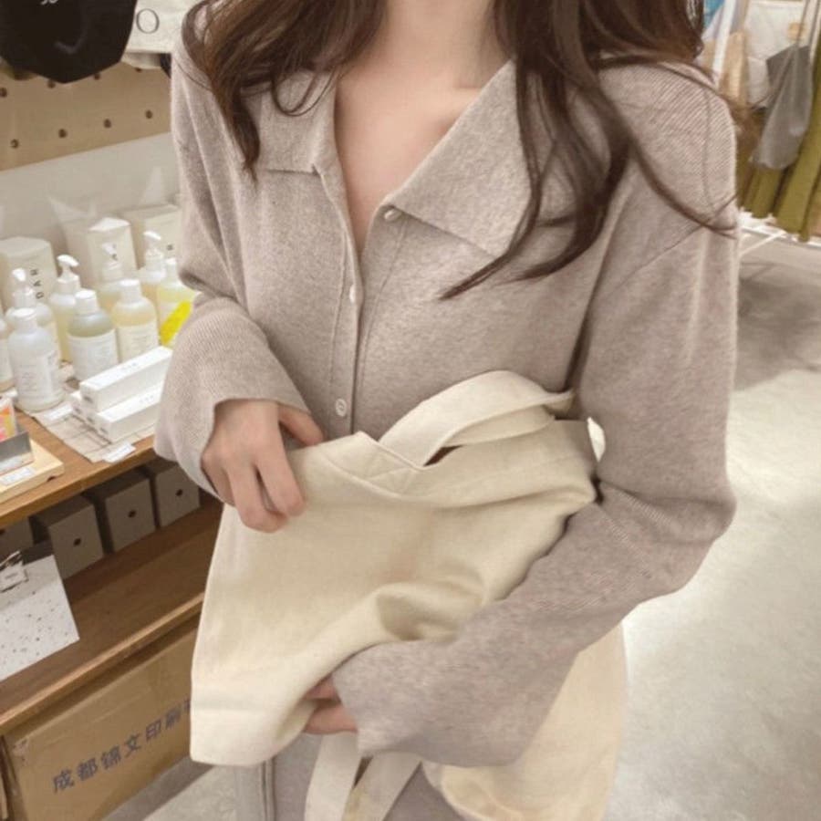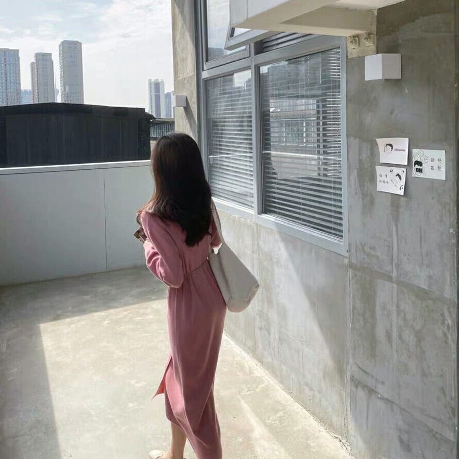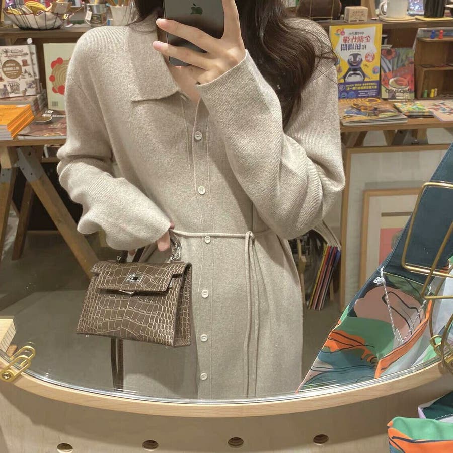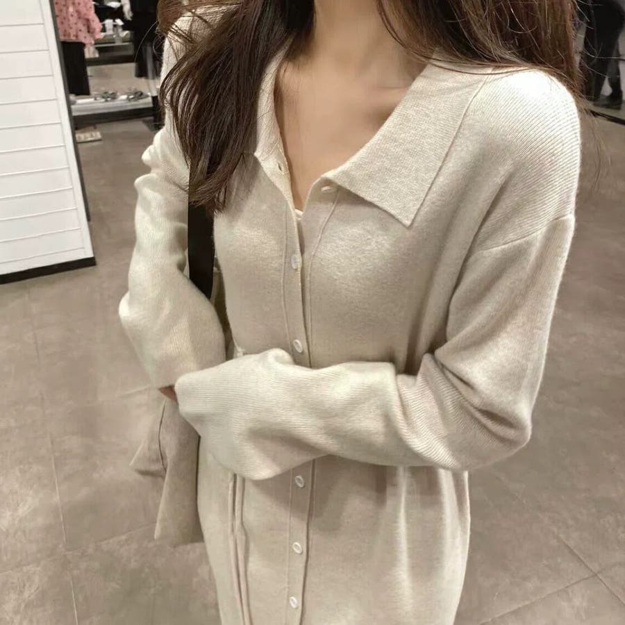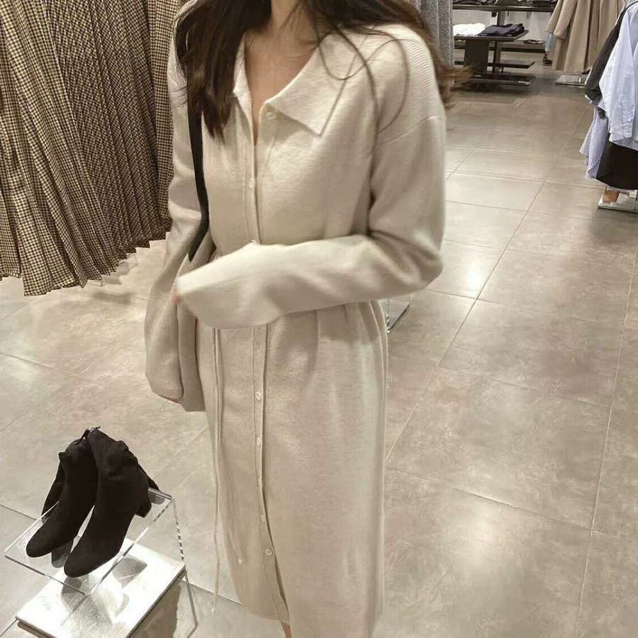 ニットワンピース 前開き えり付き ロングワンピース カーディガンとしても 韓国ファッション 韓国 大人スタイル オフィスカジュアル インスタグラム インスタ映え 秋 秋服 冬 冬服 LT259404