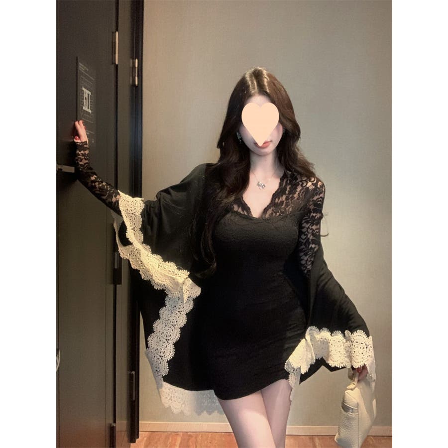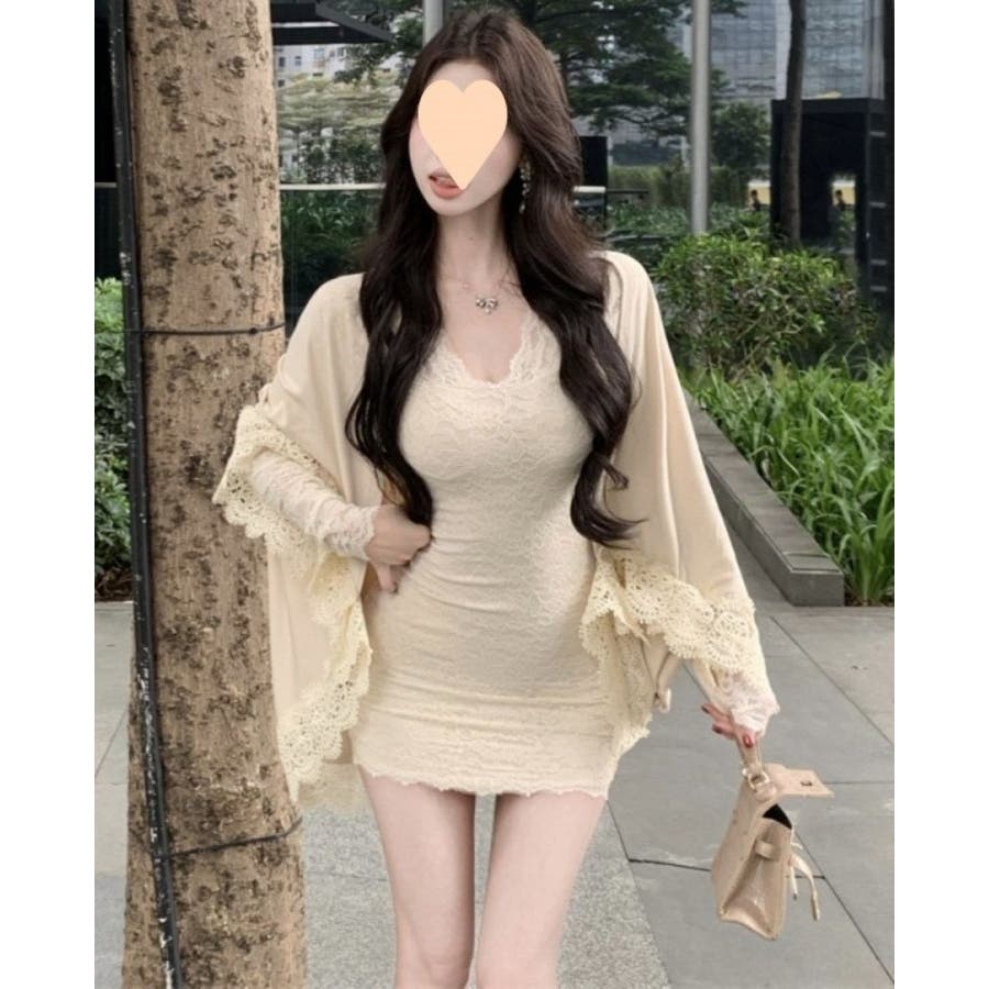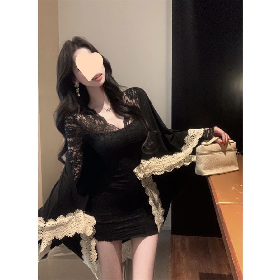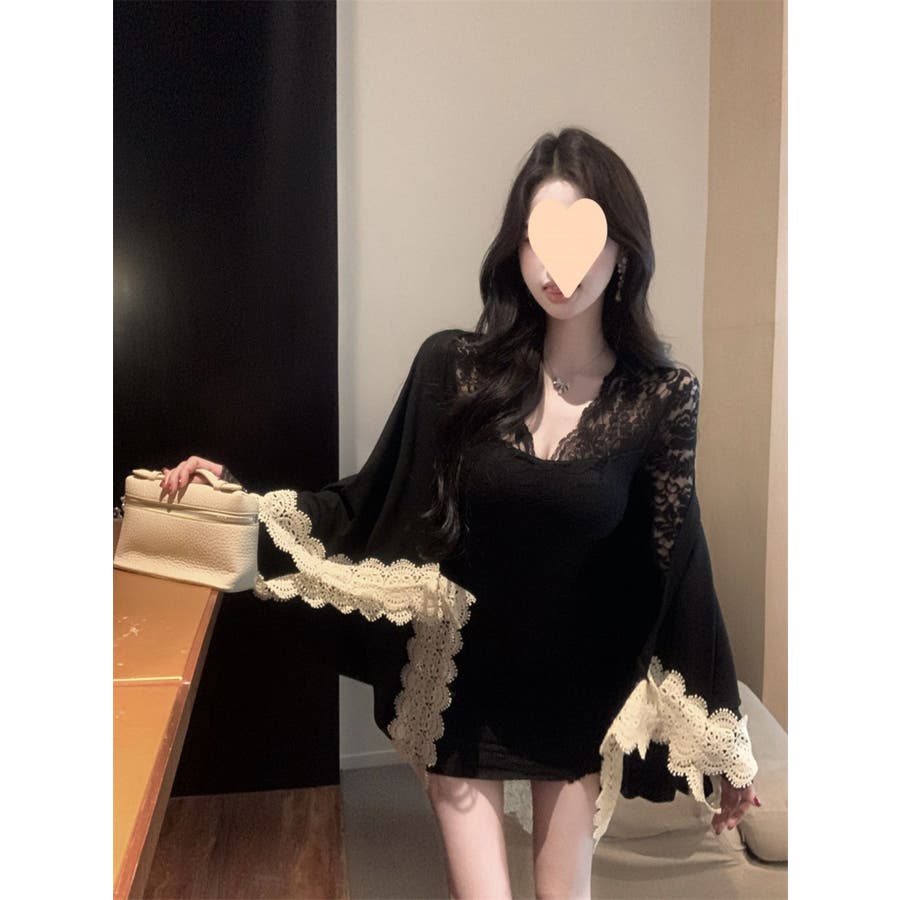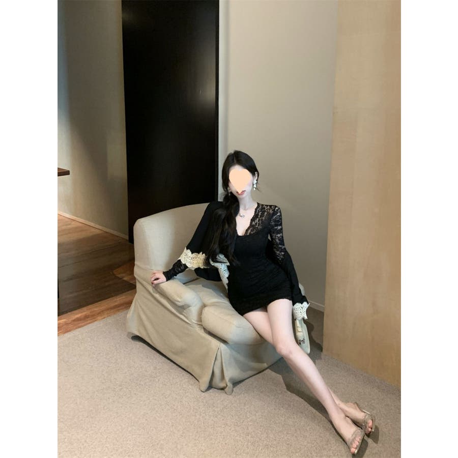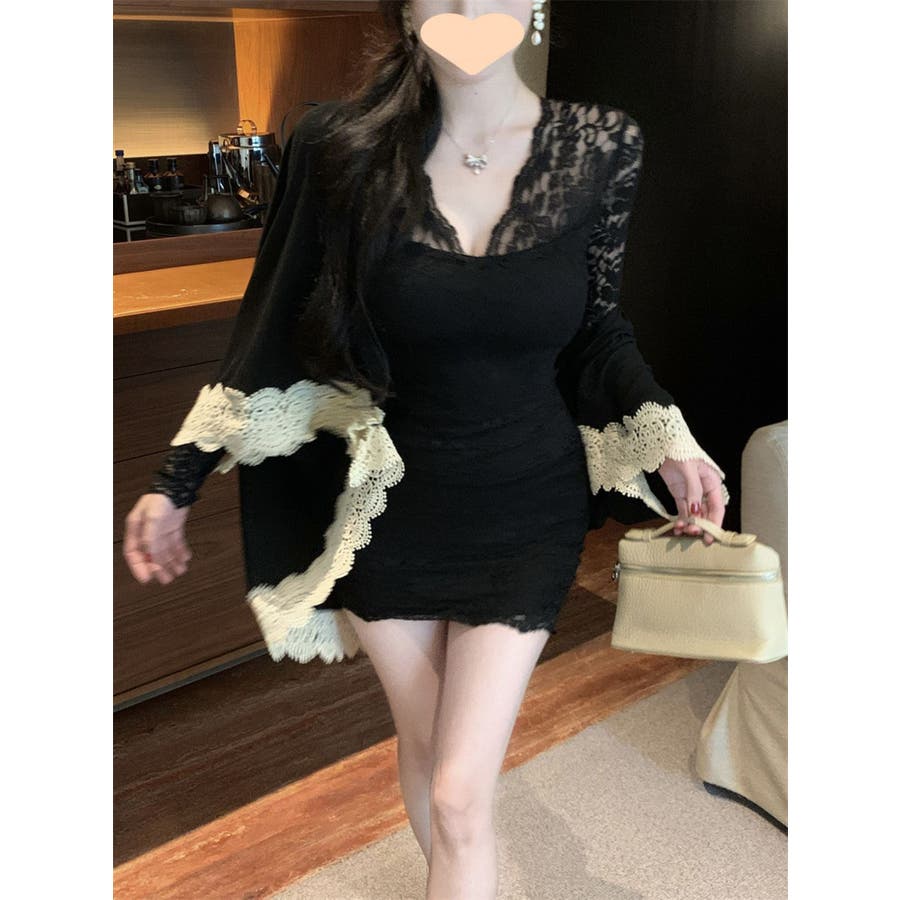 レースワンピース ミニ丈 韓国ファッション レディース Vネックワンピ 韓国 大人スタイル セクシー デート ボディーライン インスタグラム インスタ映え 秋 秋服 冬 冬服 LT259406