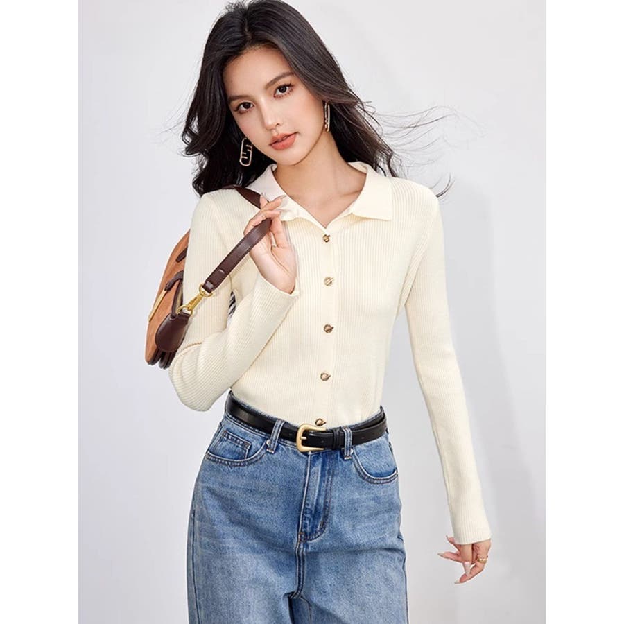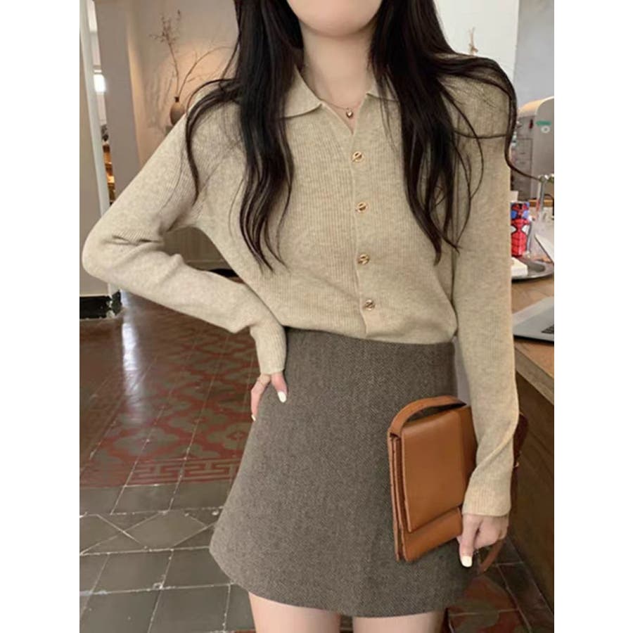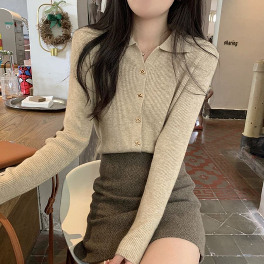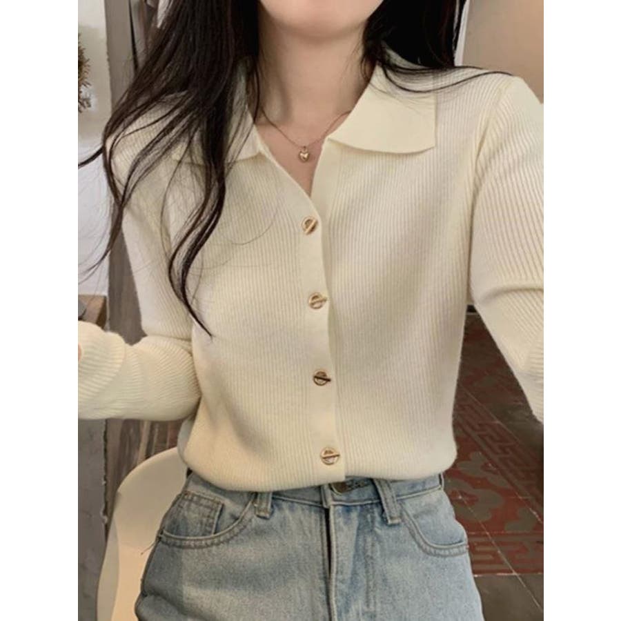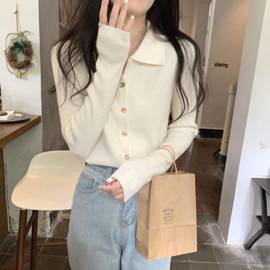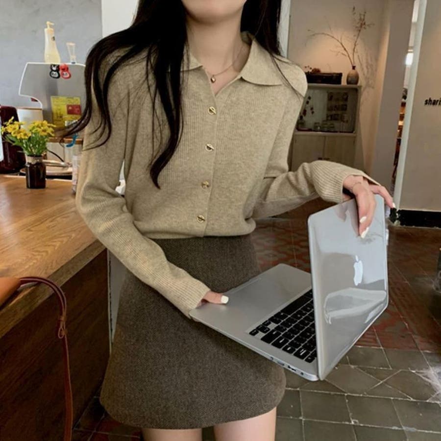 レディース ニット えり付きカーディガン 変わりボタン 長袖 大人かわいい ヘビロテ トレンド 韓国ファッション 着痩せ コスパ おしゃれ お出かけ デート 休日コーデ 普段使い かわいい 着回し 高見え インスタグラム インスタ映え 秋 秋服 冬 冬服 LT259605