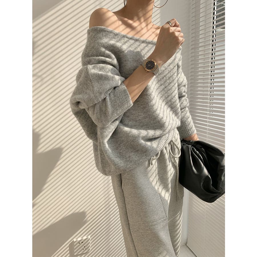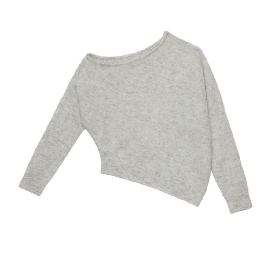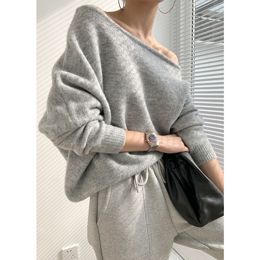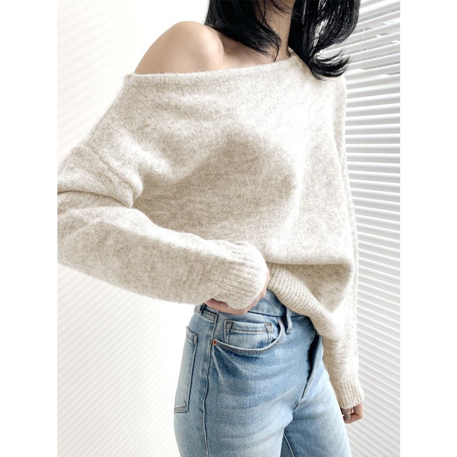 アシンメトリーネックニットプルオーバー/ドルマンスリーブ