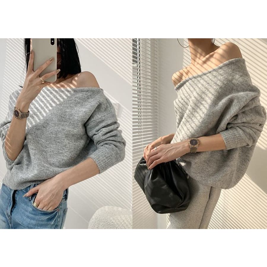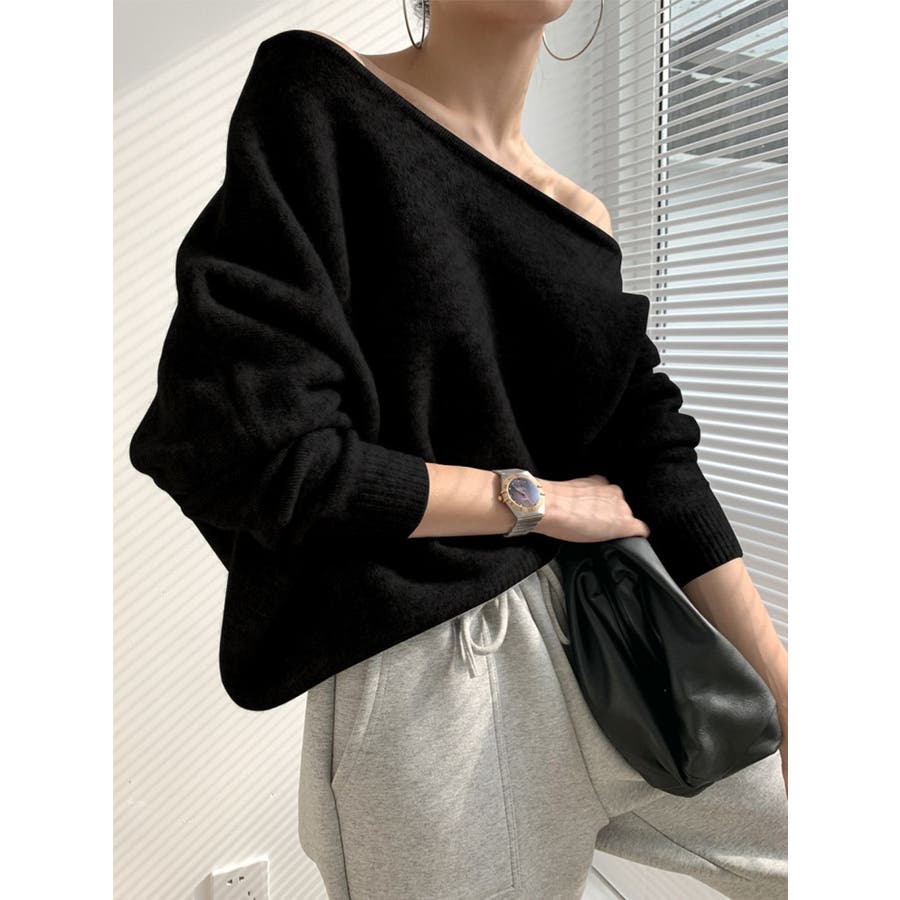 ニットプルオーバー アシンメトリーネック ドルマンスリーブ ワンショル風着用 韓国ファッション レディース 長袖 シンプル トレンド トップス 韓国ファッション 着痩せ コスパ おしゃれ お出かけ デート 普段着 普段使い OL オフィスカジュアル きれいめ かわいい 着回し 高見え 秋 秋服 冬 冬服 LT259610