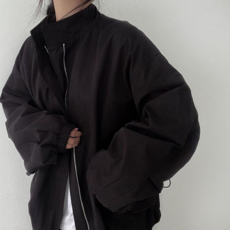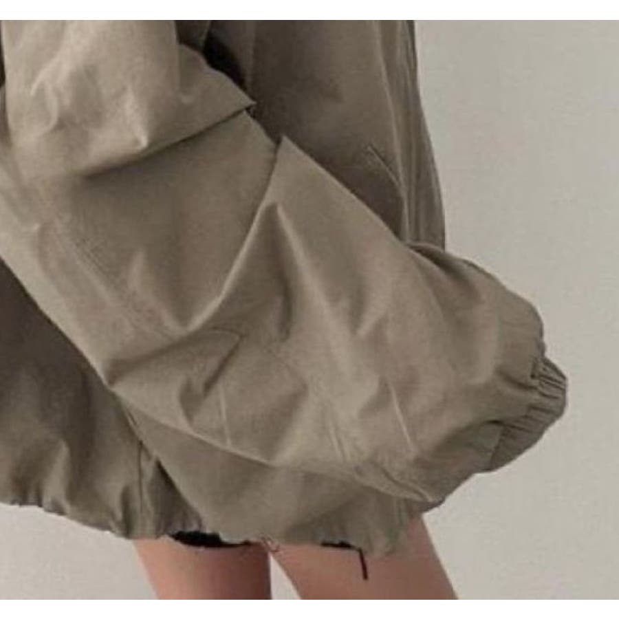 ボリューム袖ジップアップジャケット/スタンドカラー/ドローコード付