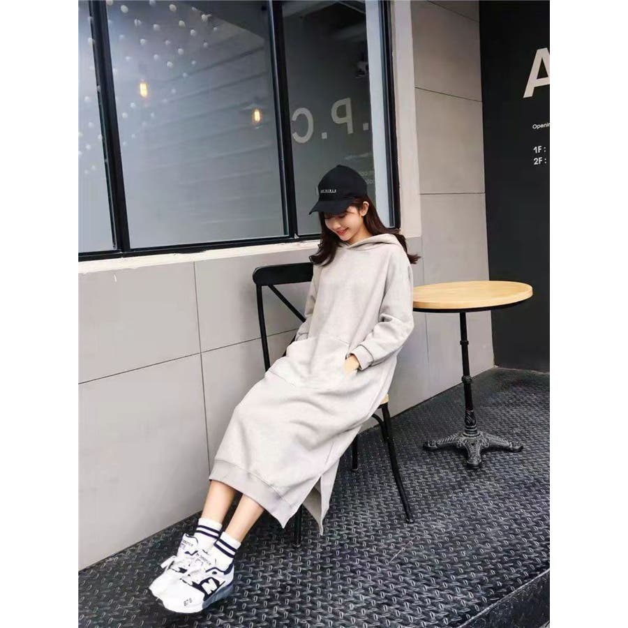 サイドスリットプルパーカーワンピース/カンガルーポケット