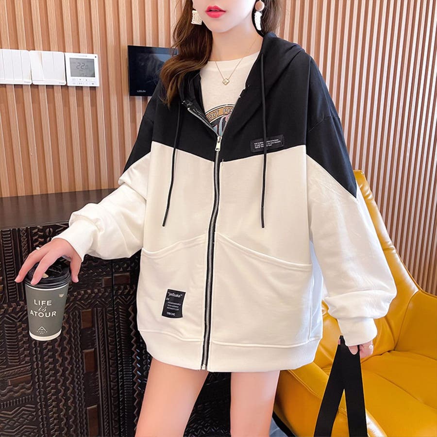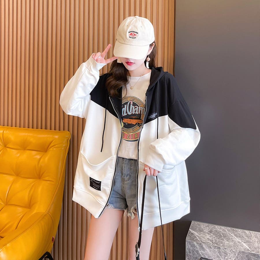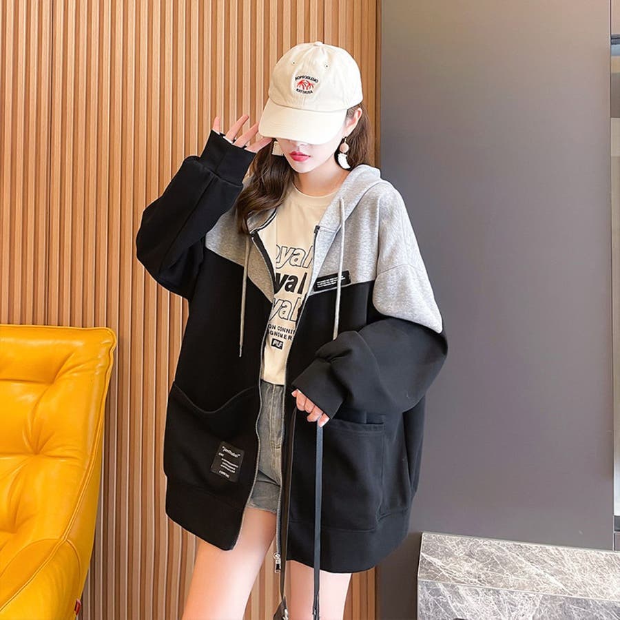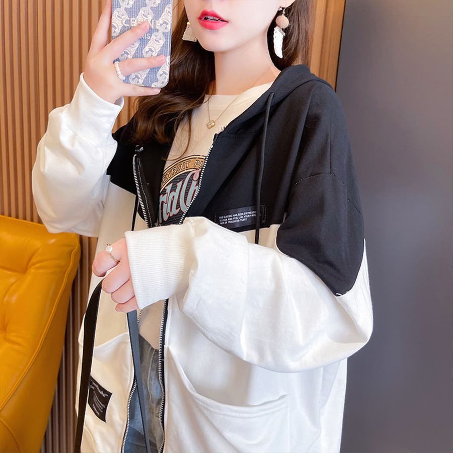 パーカー バイカラー 切替 ロゴチップ 長袖 カジュアル ヘビロテ トレンド 韓国ファッション コスパ おしゃれ お出かけ デート 普段使い かわいい トレンドコーデ 休日コーデ 学生 インスタグラム インスタ映え 秋 秋服 冬 冬服 LT25A904