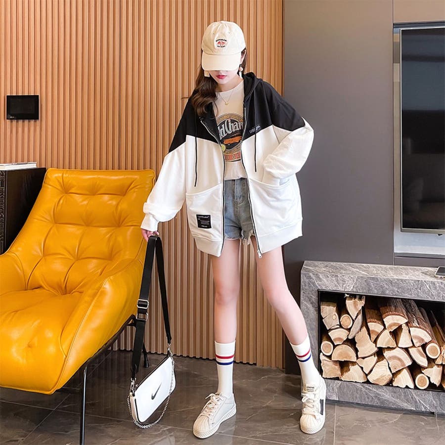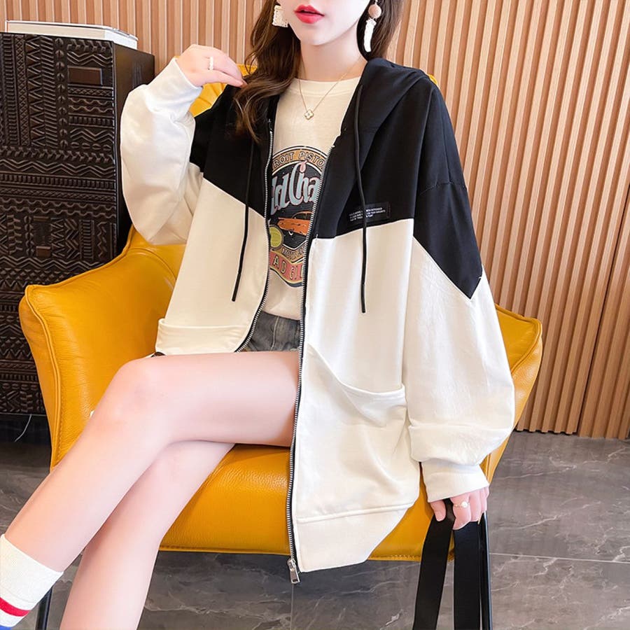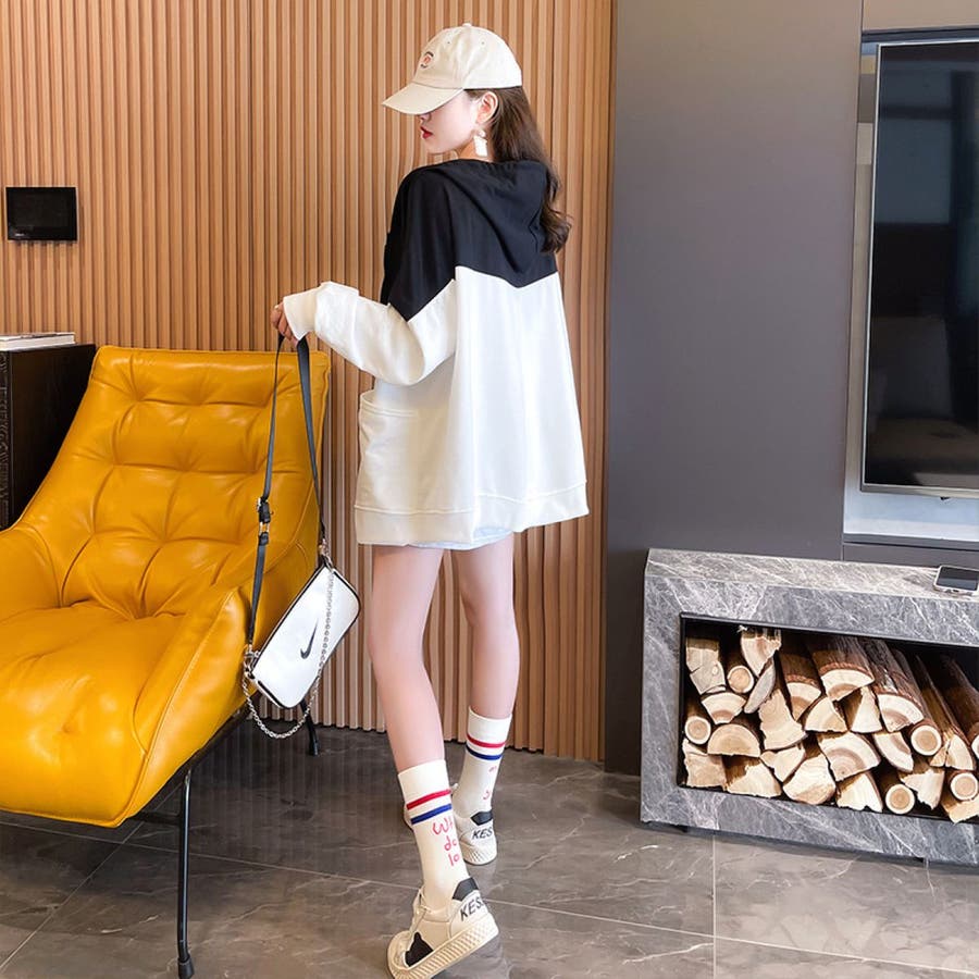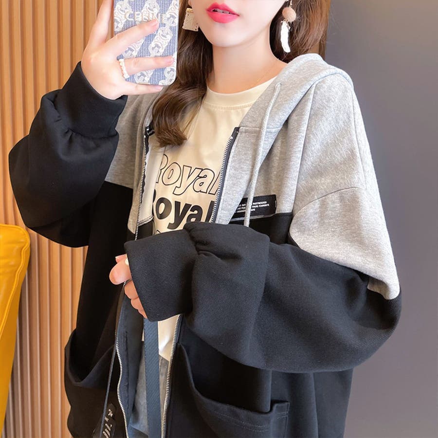 パーカー バイカラー 切替 ロゴチップ 長袖 カジュアル ヘビロテ トレンド 韓国ファッション コスパ おしゃれ お出かけ デート 普段使い かわいい トレンドコーデ 休日コーデ 学生 インスタグラム インスタ映え 秋 秋服 冬 冬服 LT25A904