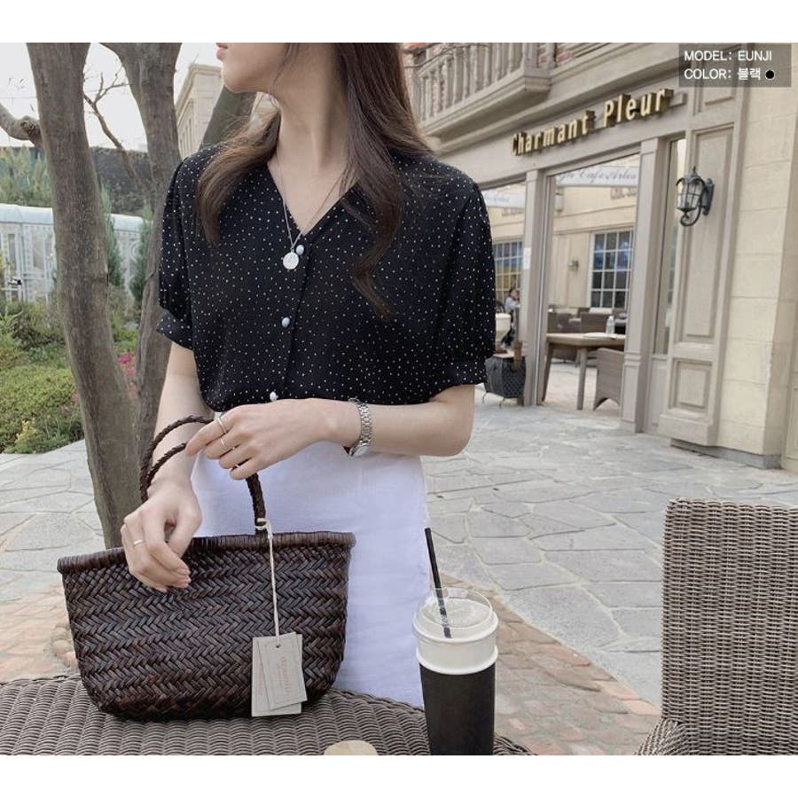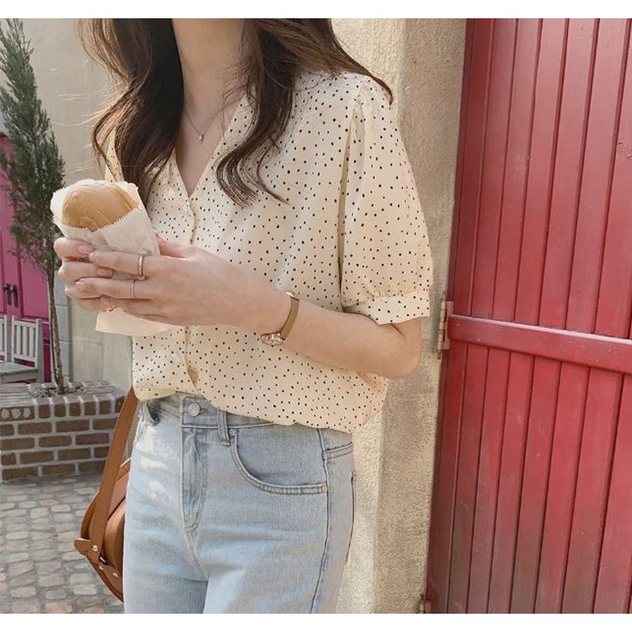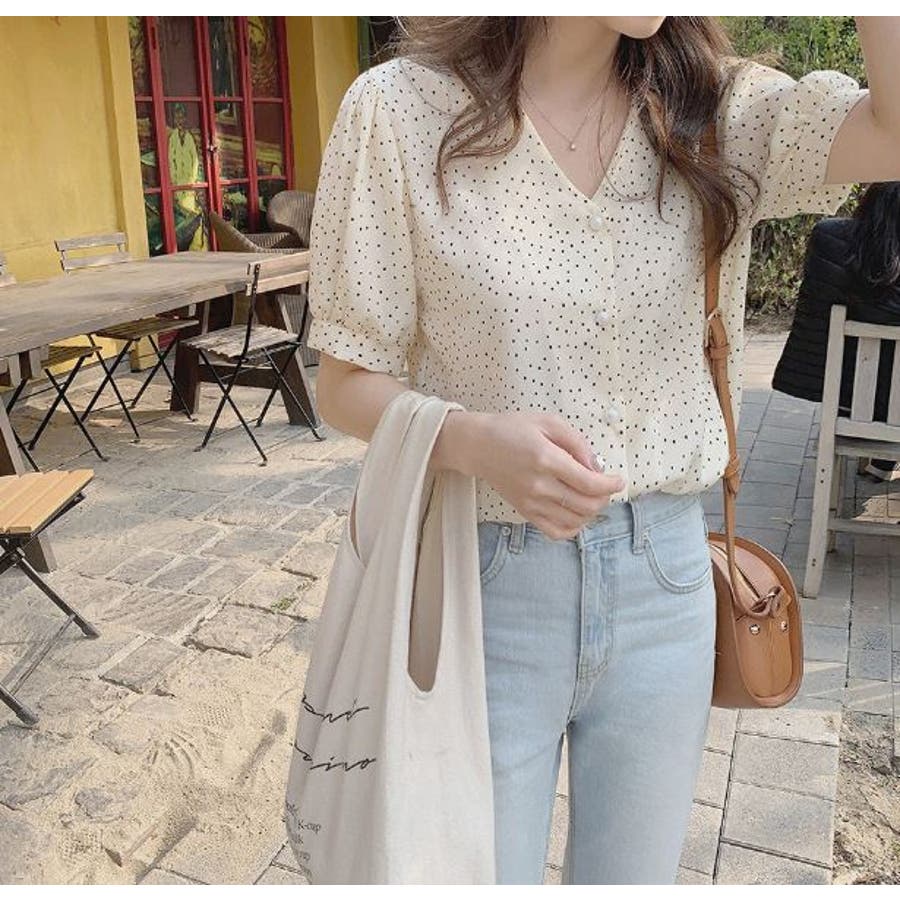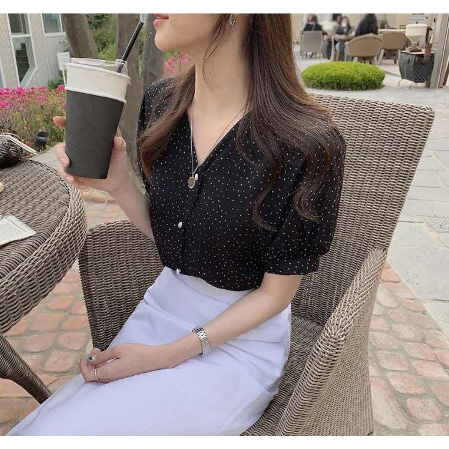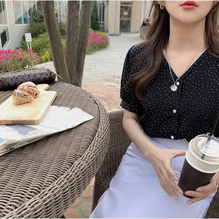 ブラウス シフォンドット柄 前ボタンブラウス