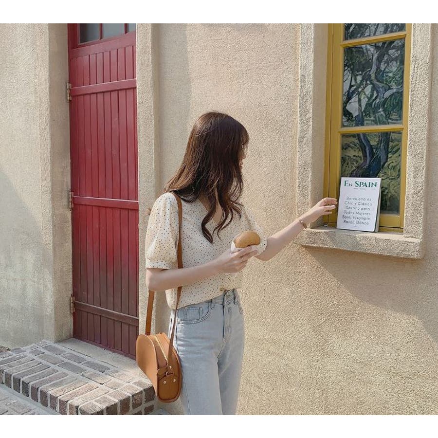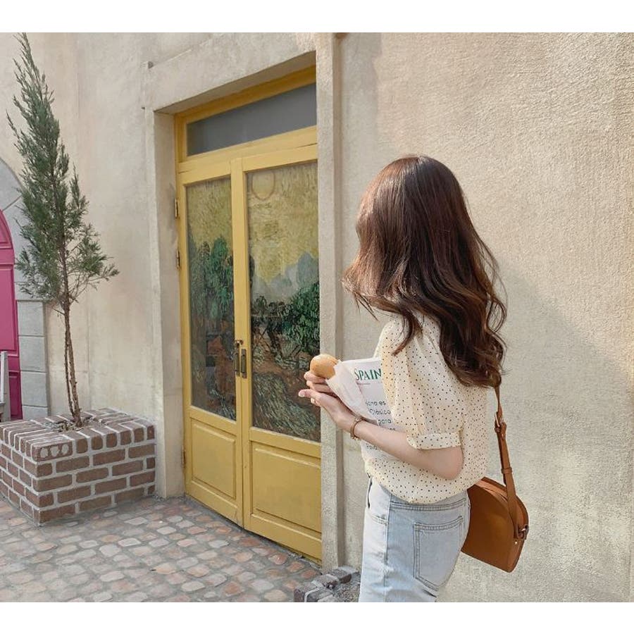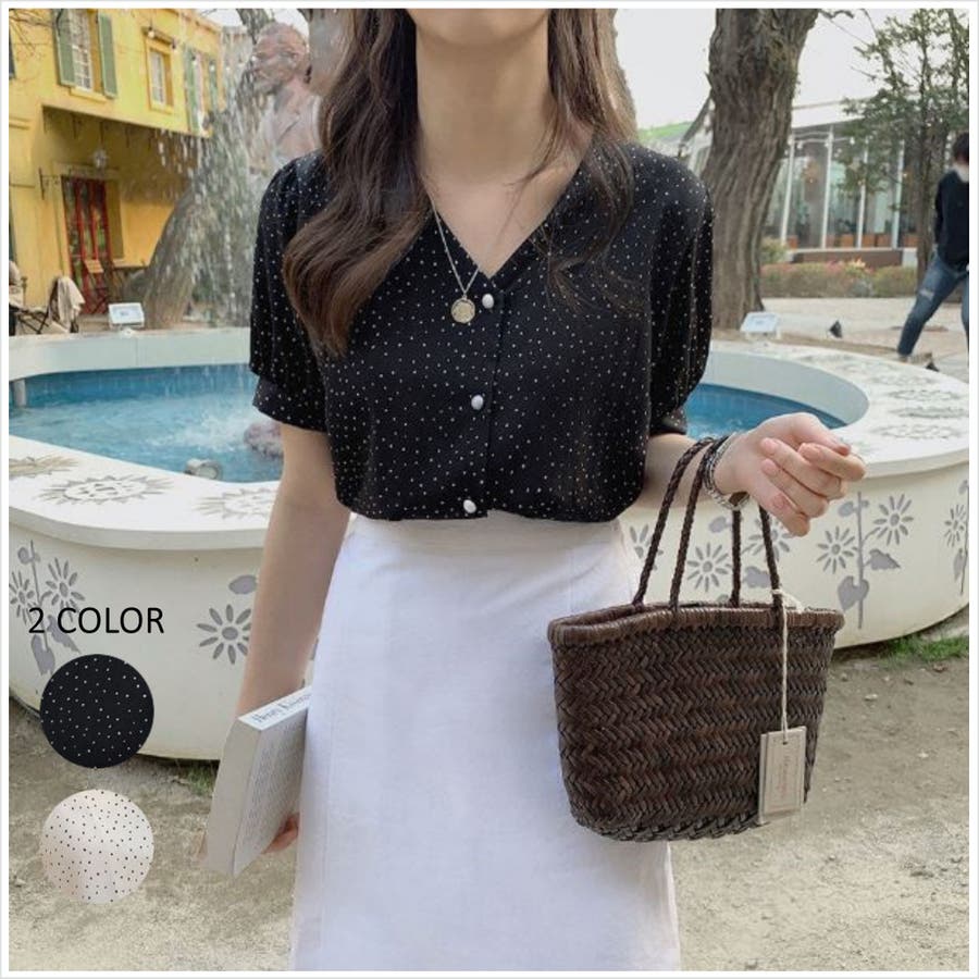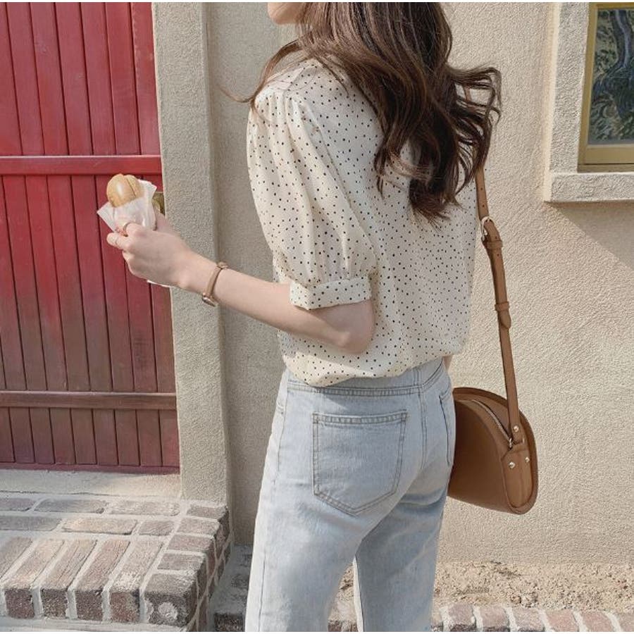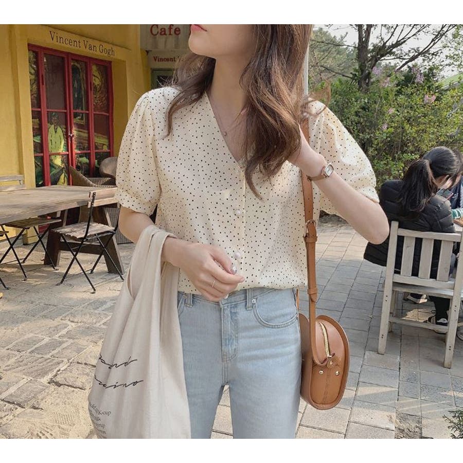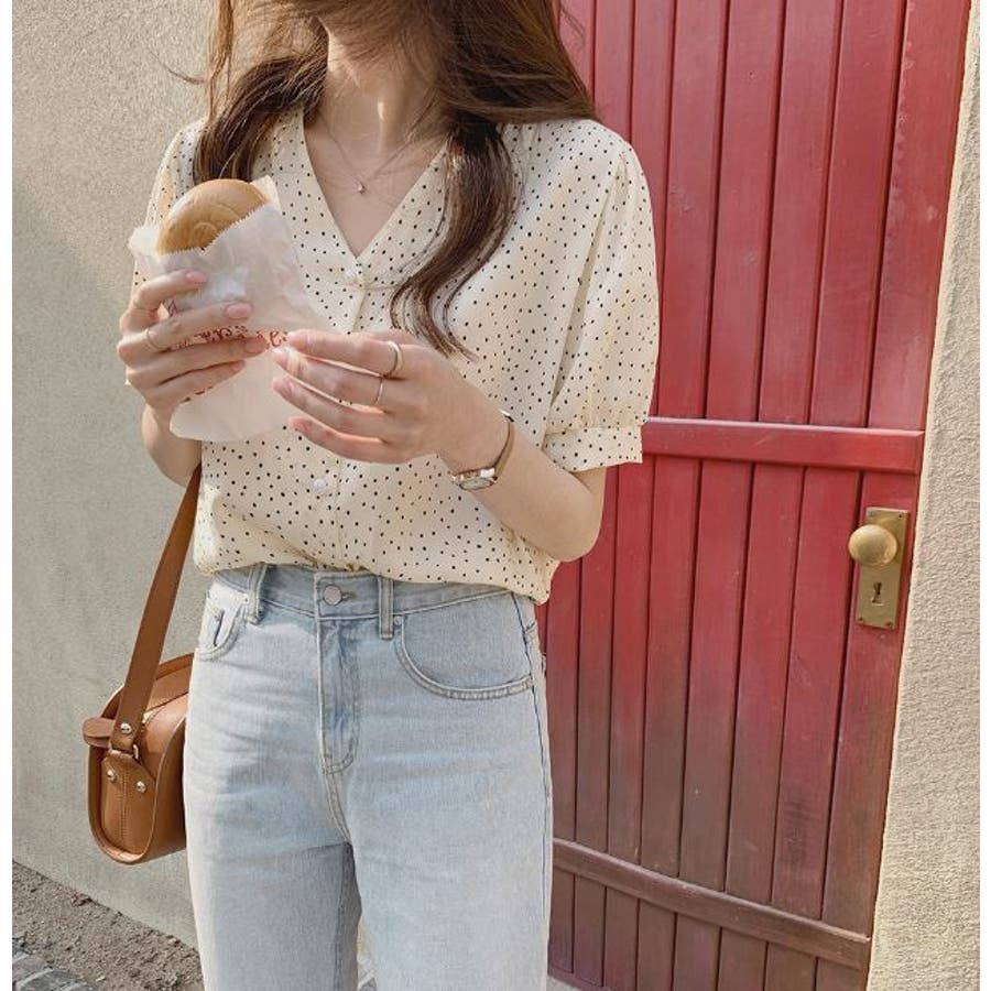 ブラウス シフォンドット柄 前ボタンブラウス
