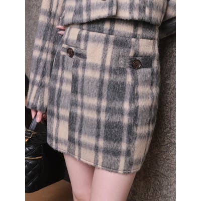 シャギーチェック台形スカート