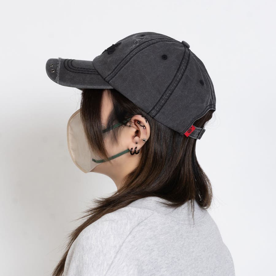 ウォッシュ加工ハトメ刺繍キャップ