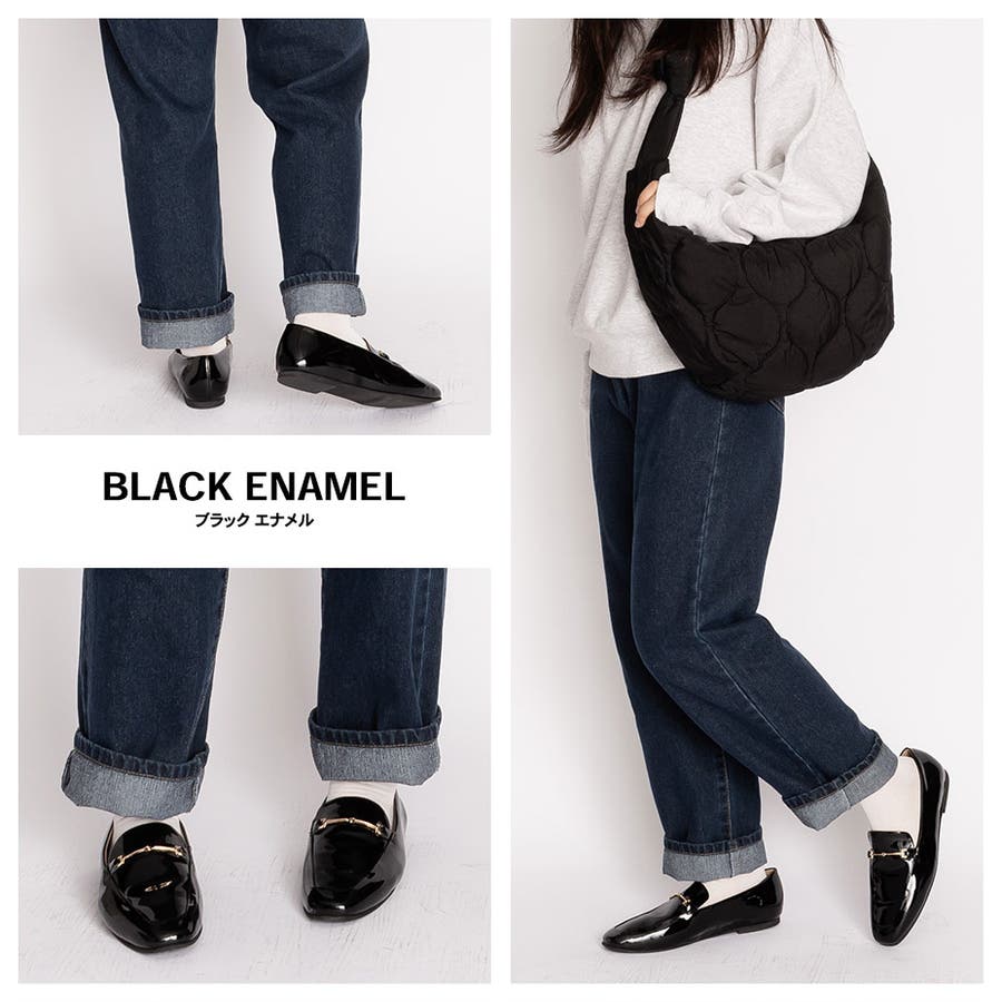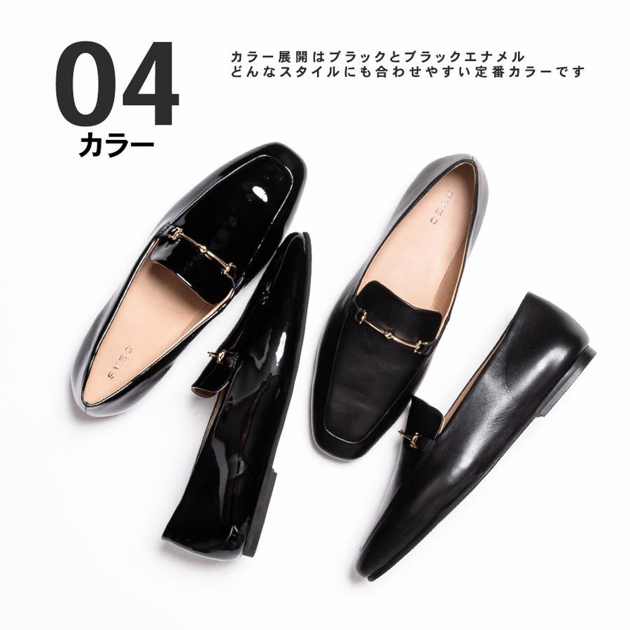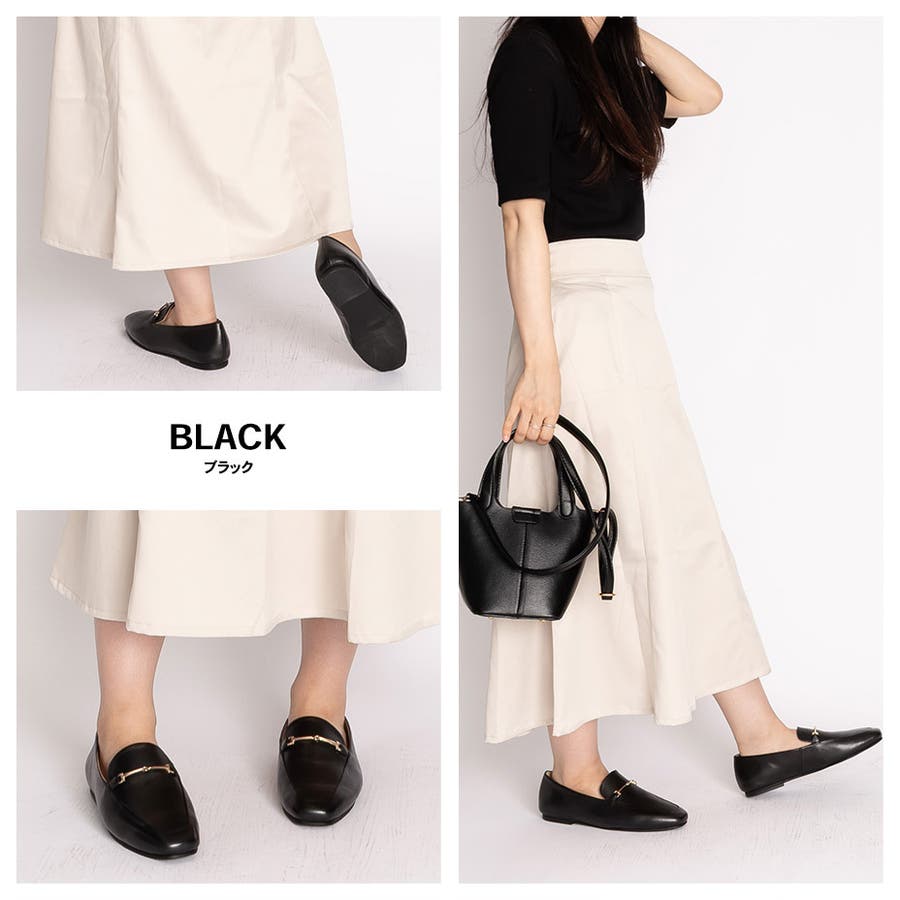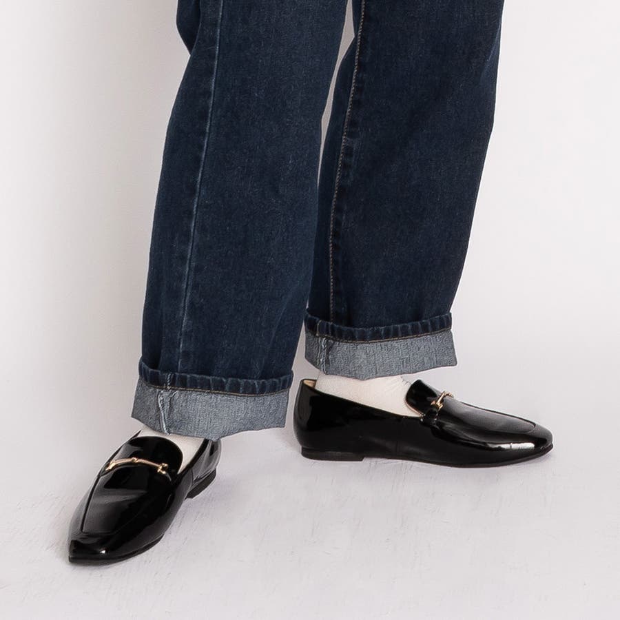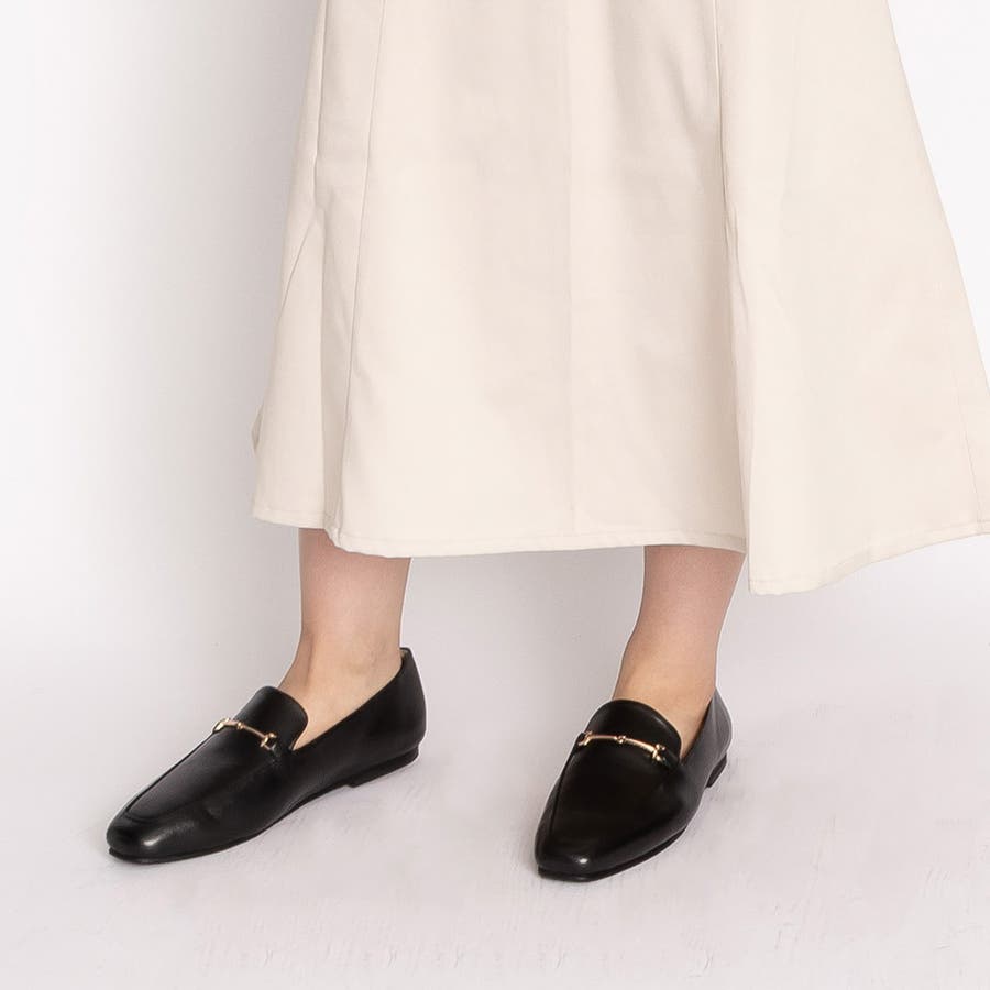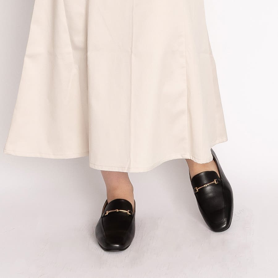 スクエアトゥ ぺたんこ ビットローファー / スリッポン