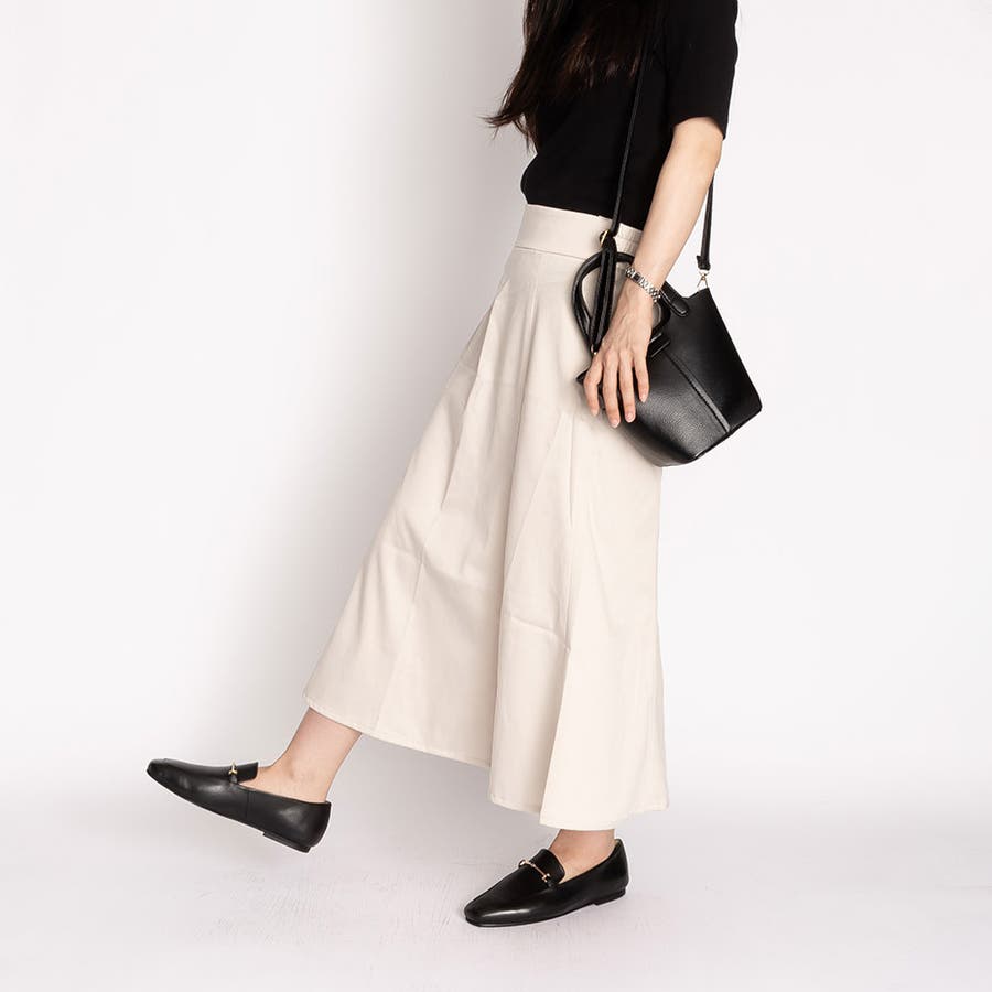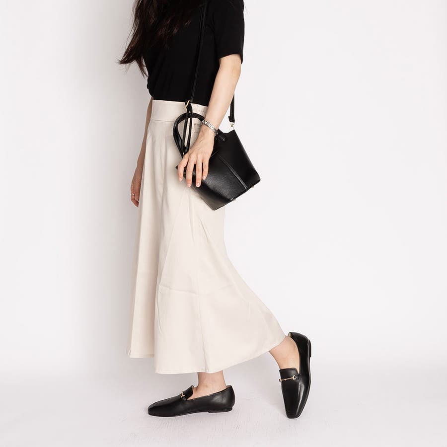 上品なスクエアトゥはパンツスタイルとも相性抜群。