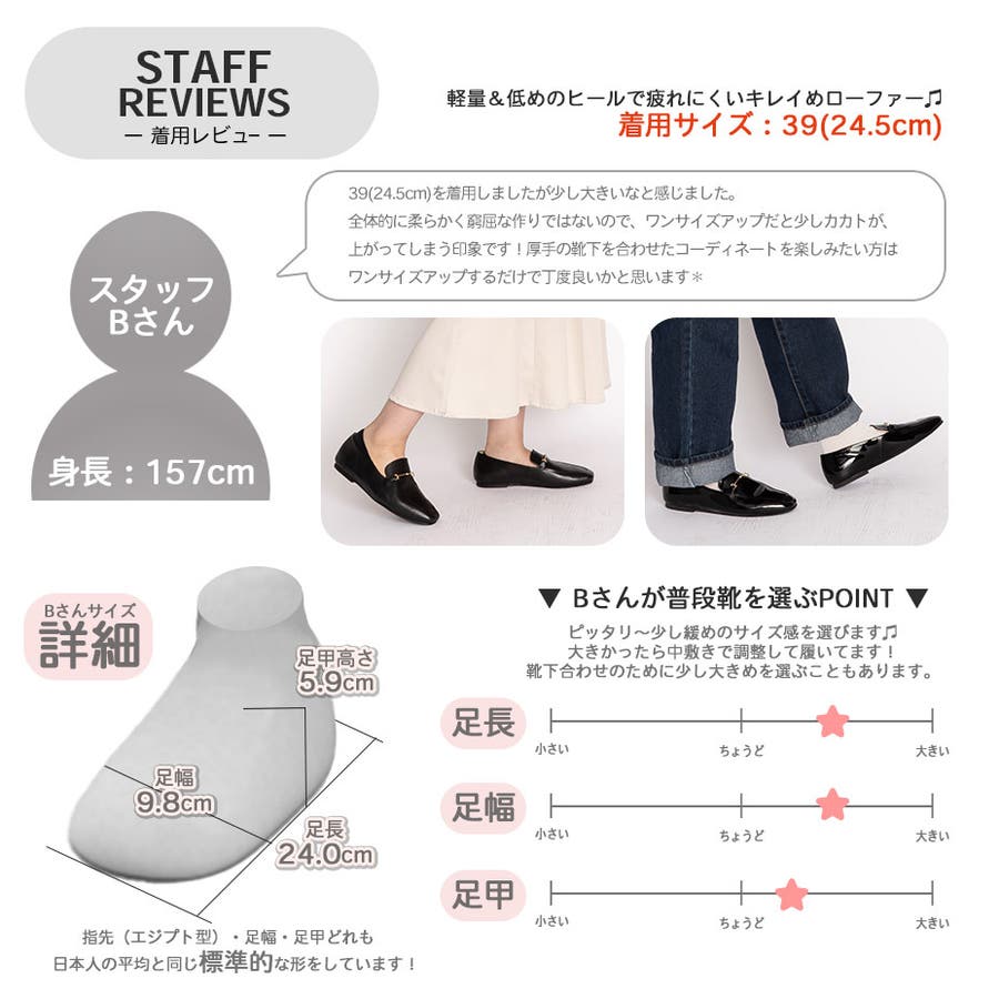 履き方・足型等、個人差がございますので、あくまでも参考程度にお考え下さいませ。