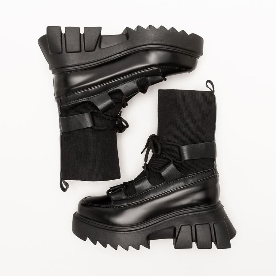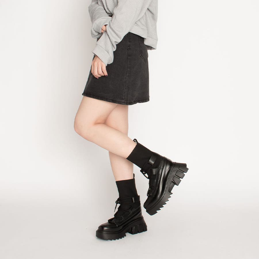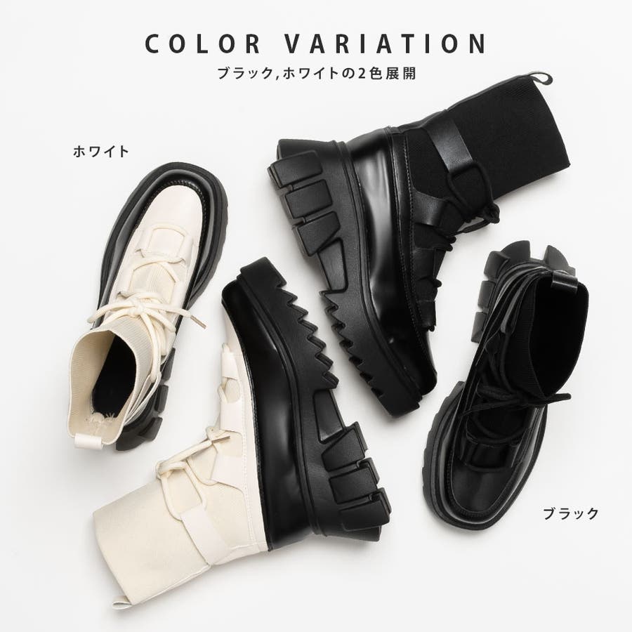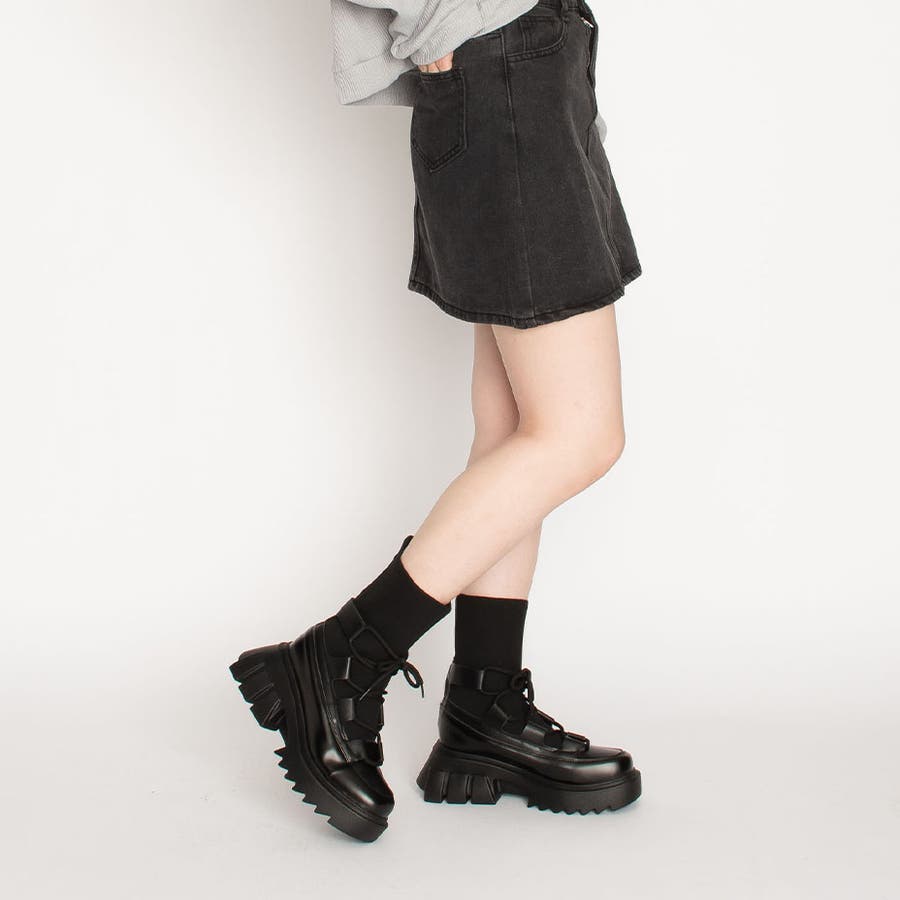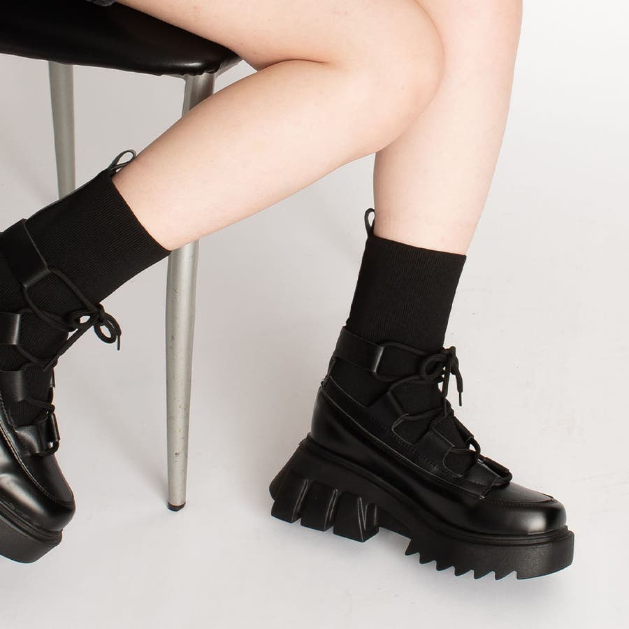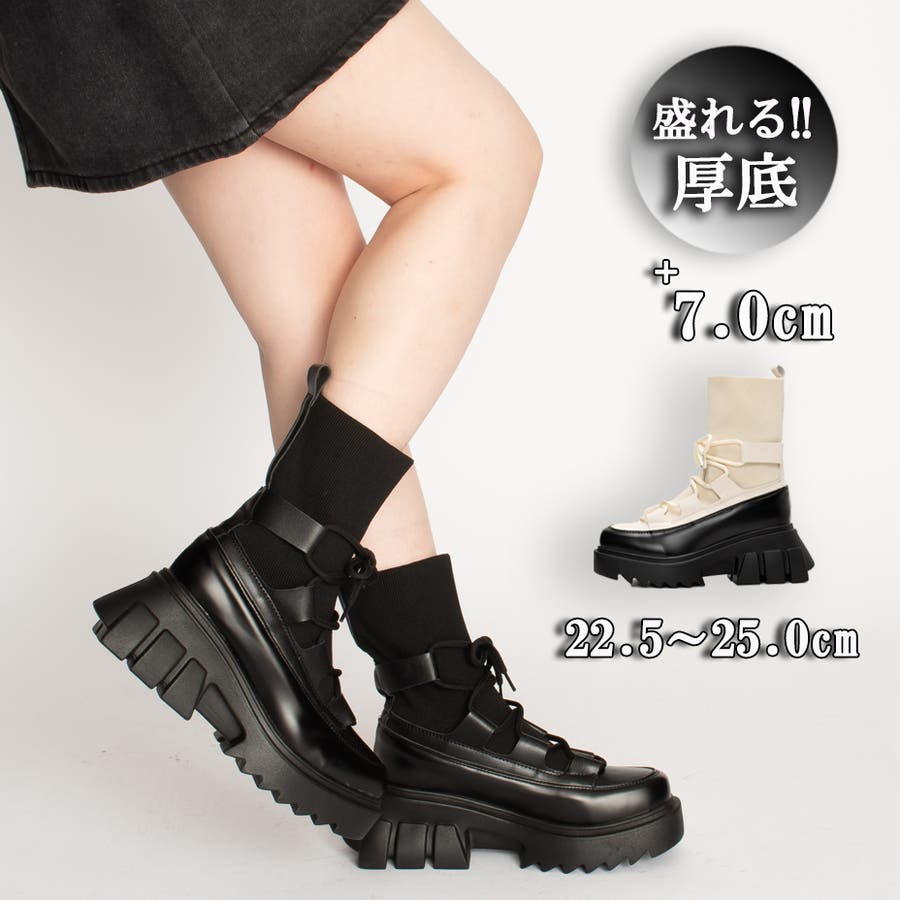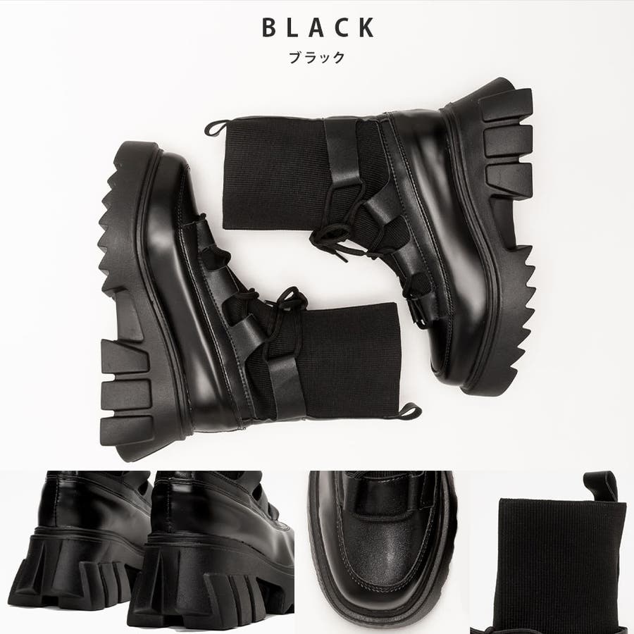 厚底ブーツ 厚底 ショートブーツ ストリート レディーズ ソックスブーツ 韓国ファッション 黒 秋 冬 レースアップブーツ ストレッチブーツ お洒落 人気 可愛い ギャル NXL1766