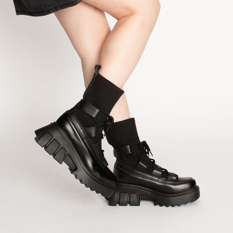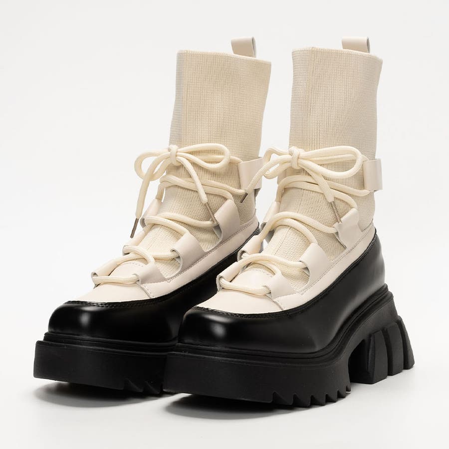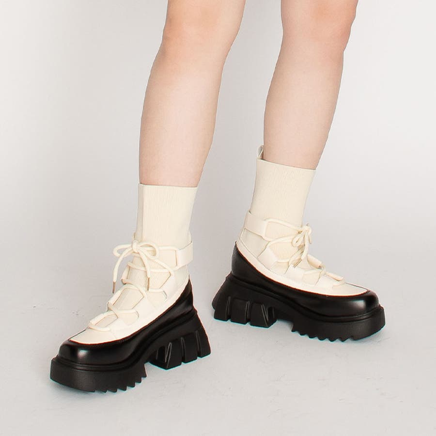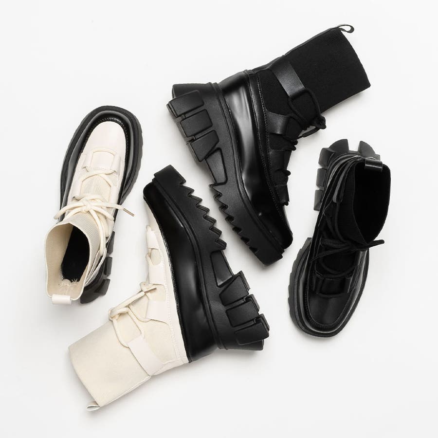 ダイナミックなシルエットに心惹かれる、ダッドなボリューム感が魅力の厚底ソックスブーツ。