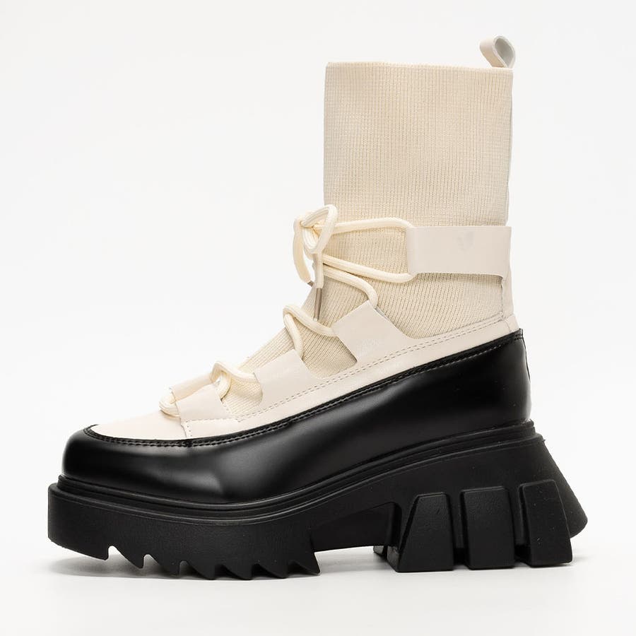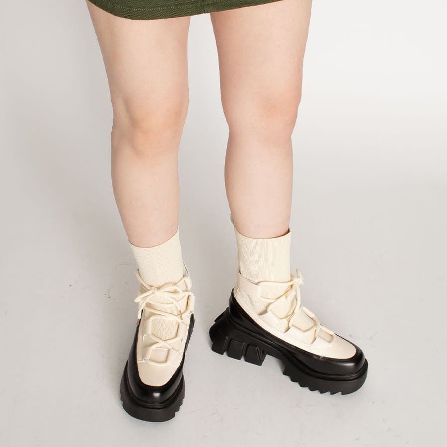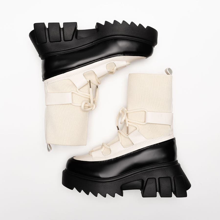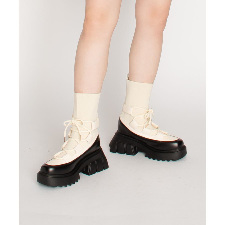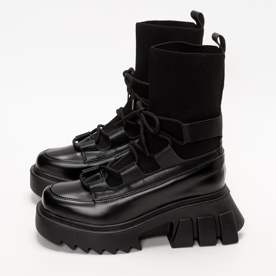 ダイナミックなシルエットに心惹かれる、ダッドなボリューム感が魅力の厚底ソックスブーツ。