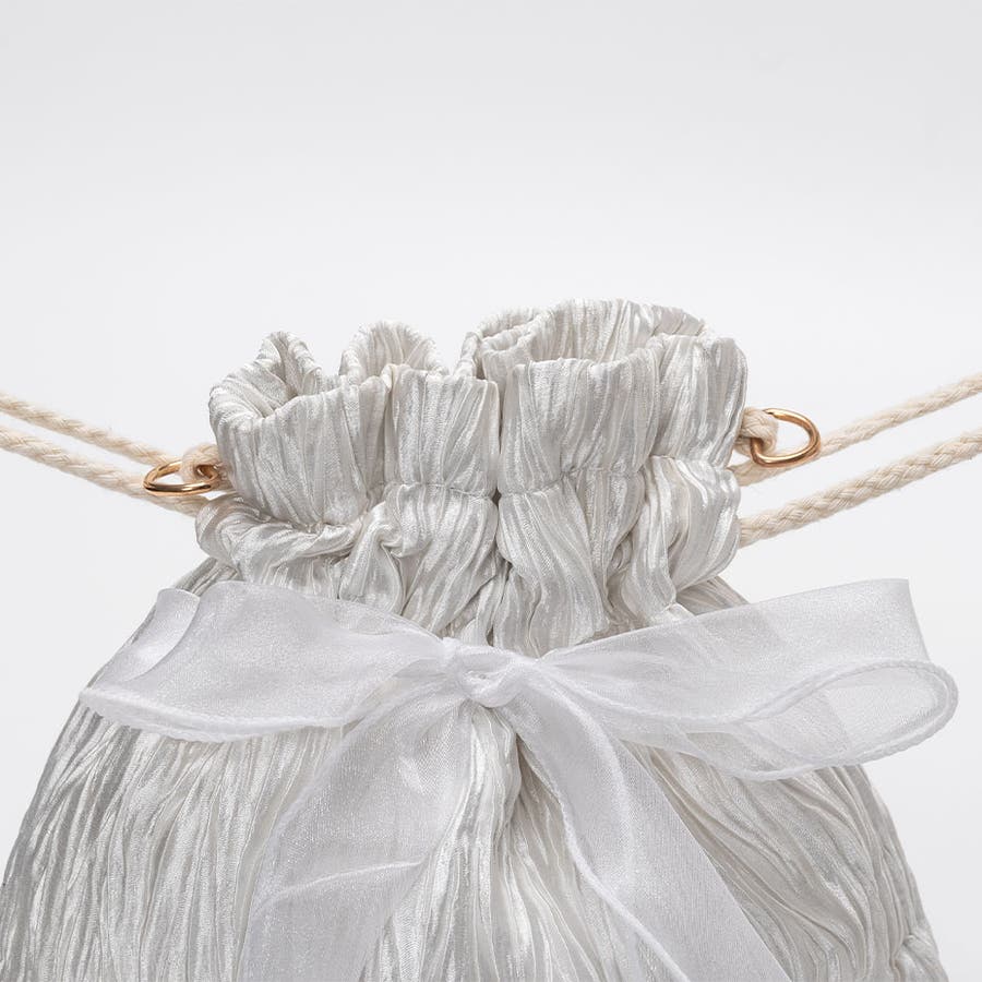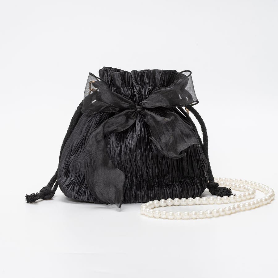 フェイクパール 巾着ミニバッグ / リボン ショルダーストラップ